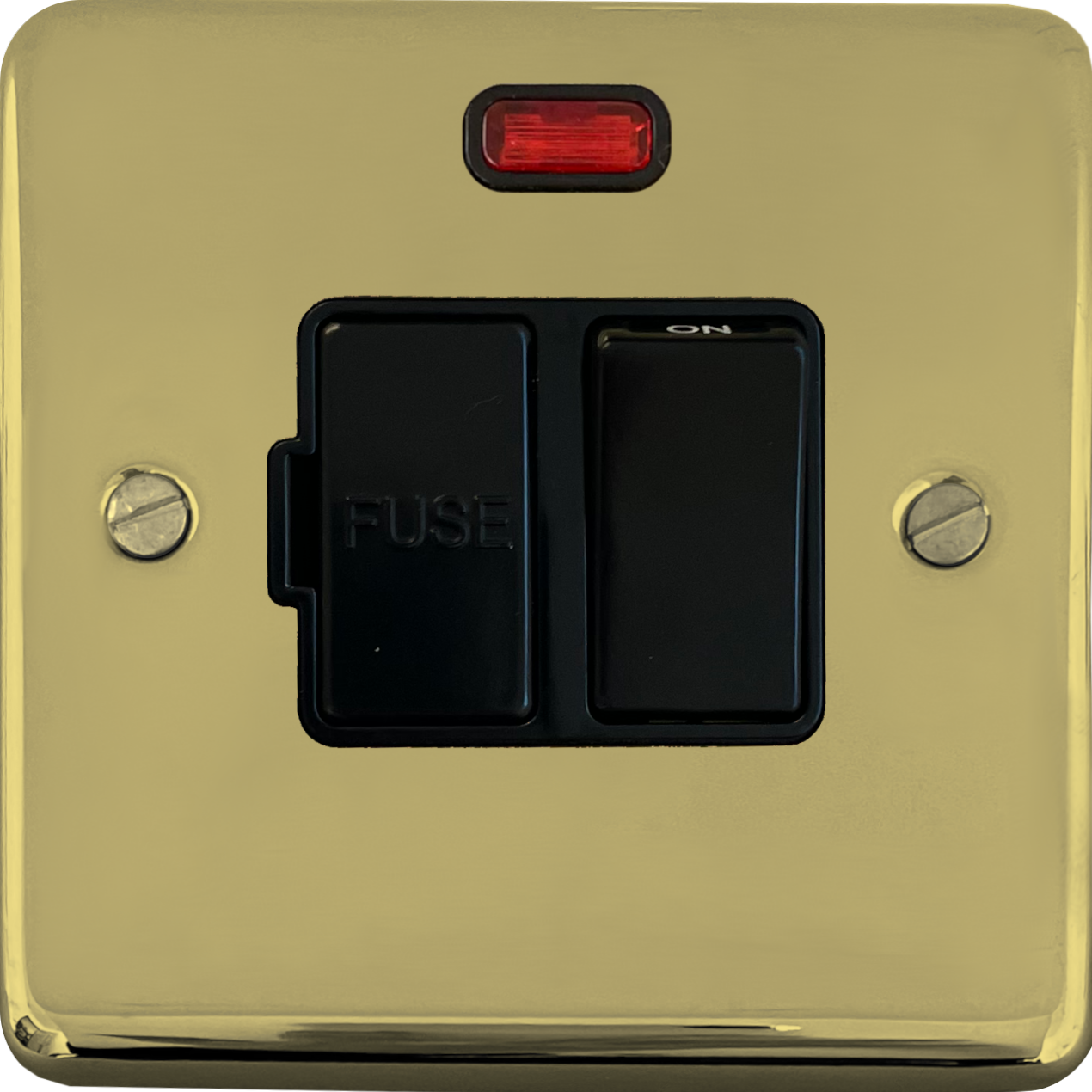 Contour Polished Brass Hand Waxed Switched Fused Spur with Neon (Black Switch) CL.27B.HX