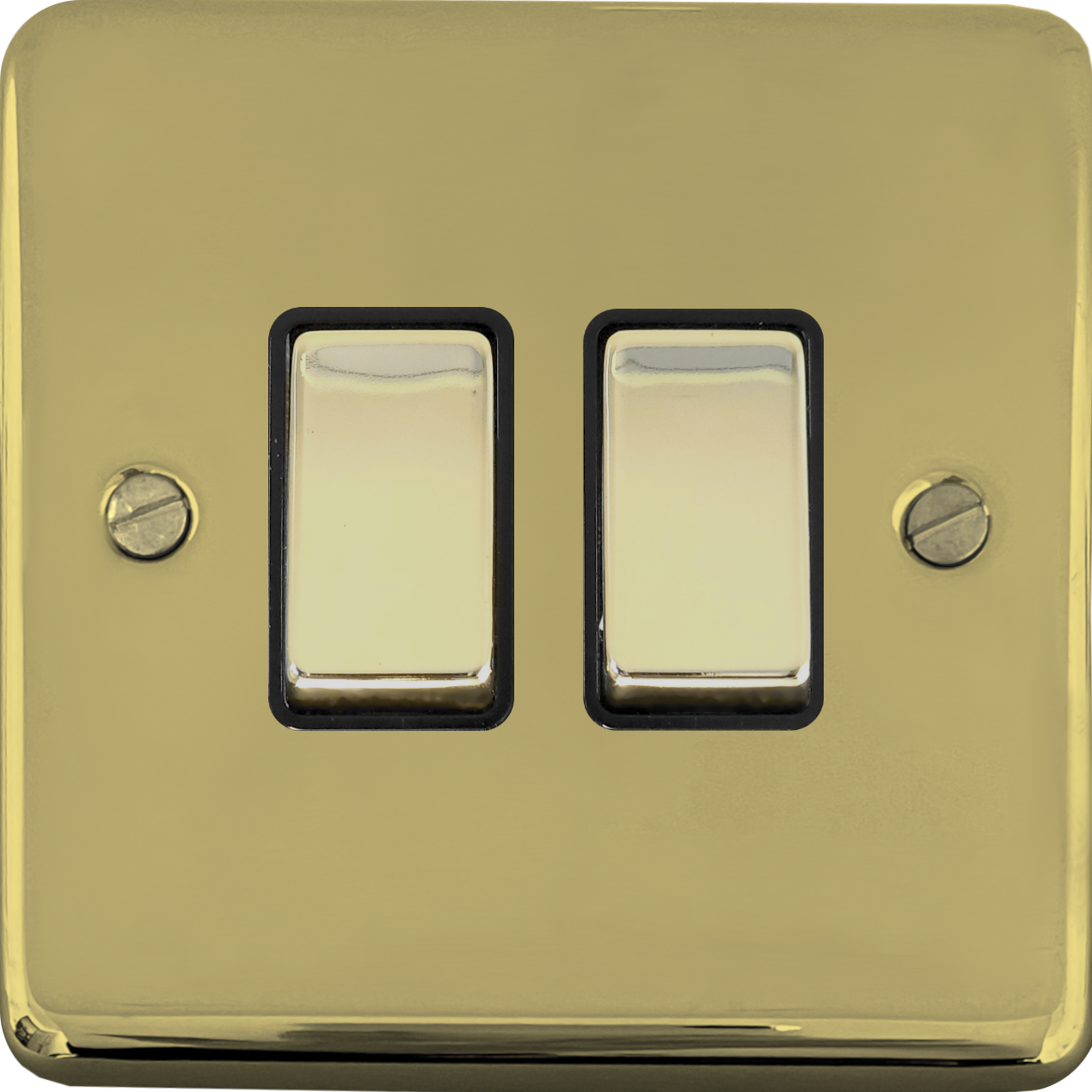 This is a single plate two gang polished brass light switch from G+H Electrical Accessories.