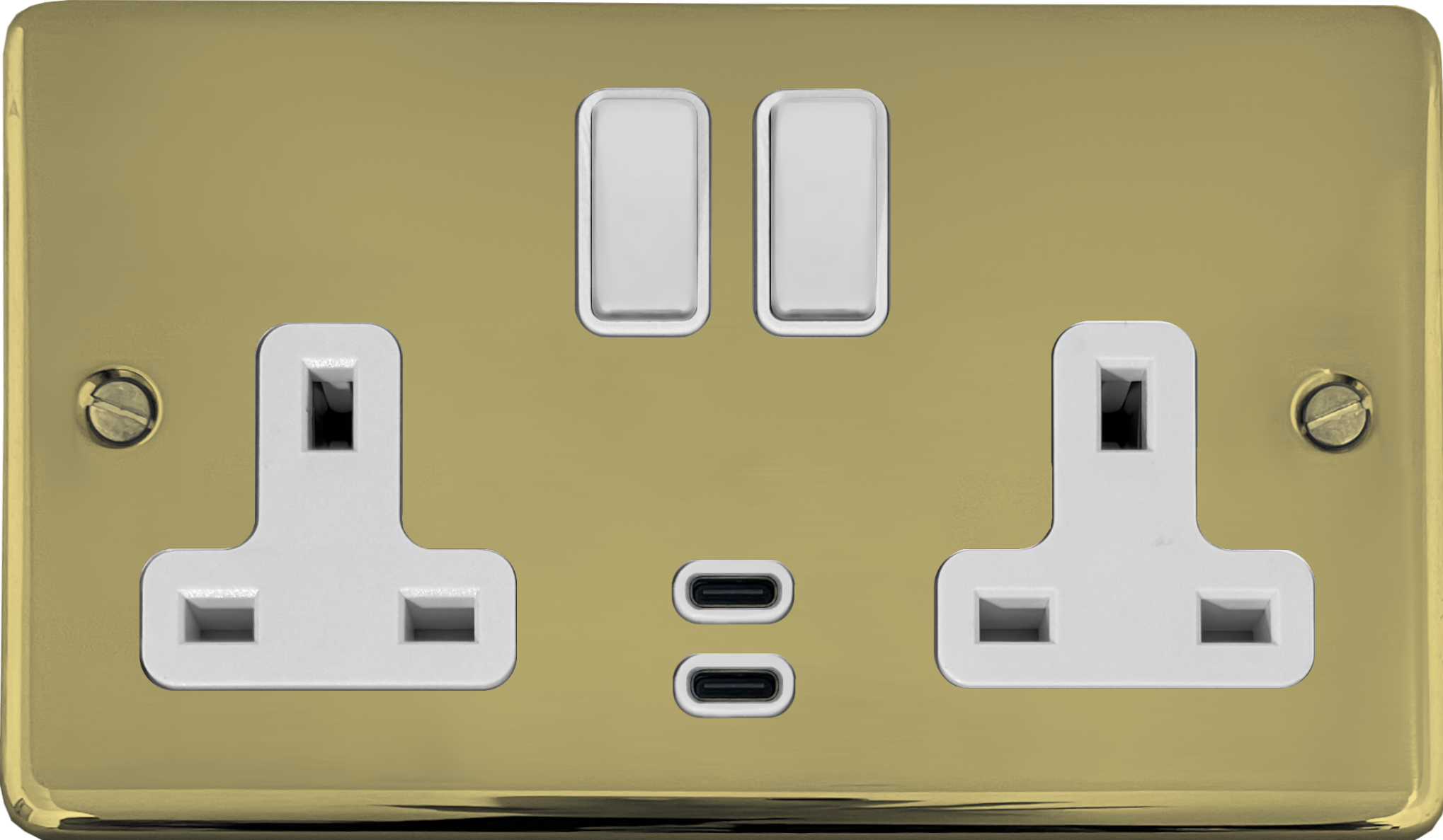 Contour Polished Brass Unlacquered Double Socket with Dual USB-C (White Switches) CL.913W.BUL