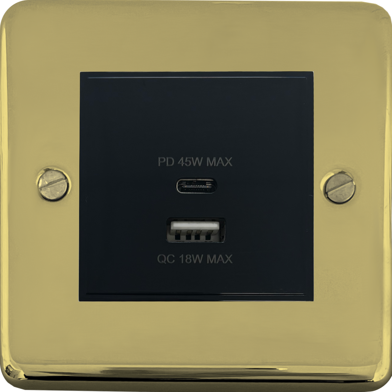 Contour Polished Brass Unlacquered USB Charger (Dual USB A + C Quick Charge) (1 Gang/Black Insert) CL.43B.BUL