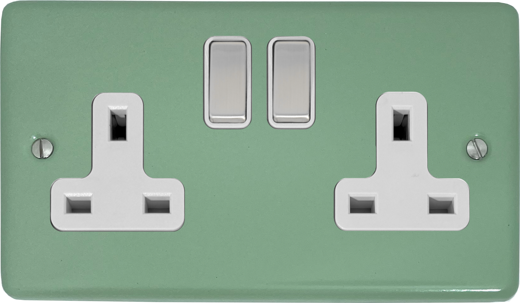 Contour Sage Green Double Socket (White Insert/Steel Switches) - CSG210-SC