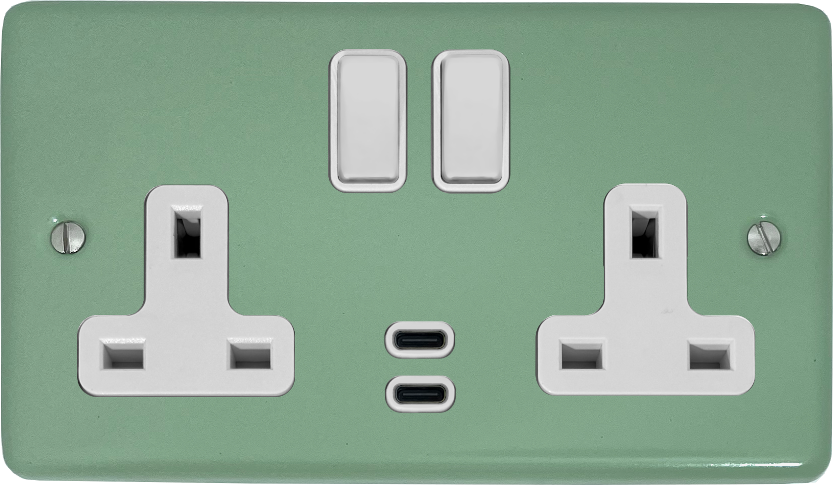Contour Sage Green Double Socket with USB (2 Gang/USB-A and USB-C/White Switches) CL.913W.SG