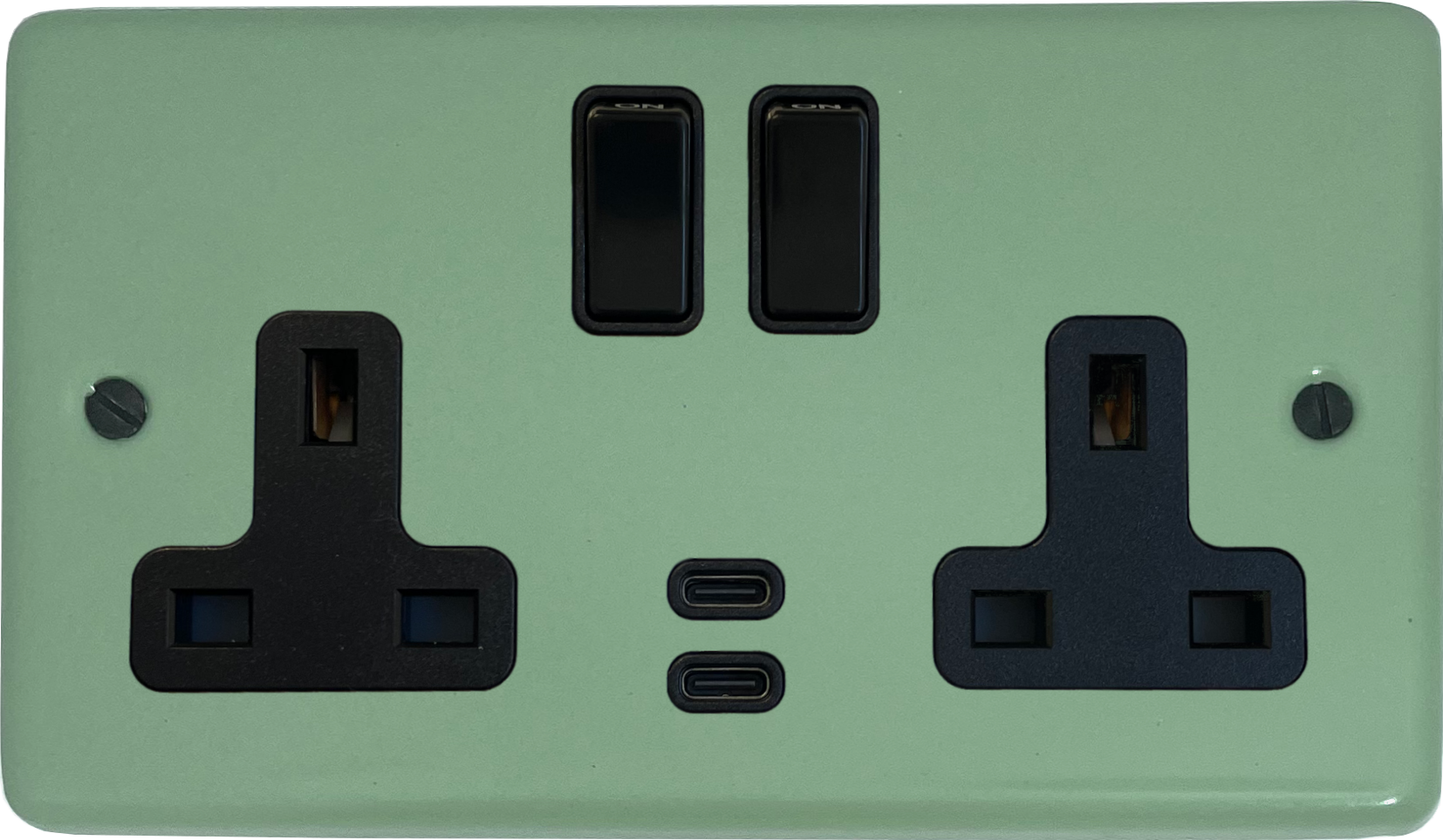 Contour Sage Green Double Socket with USB (2 Gang/USB-C/Black Switches) CL.913B.SG