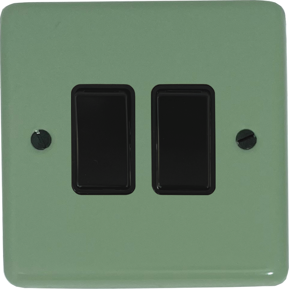 Contour Sage Green Light Switch (2 Gang/Black Switches) CL.2B.SG