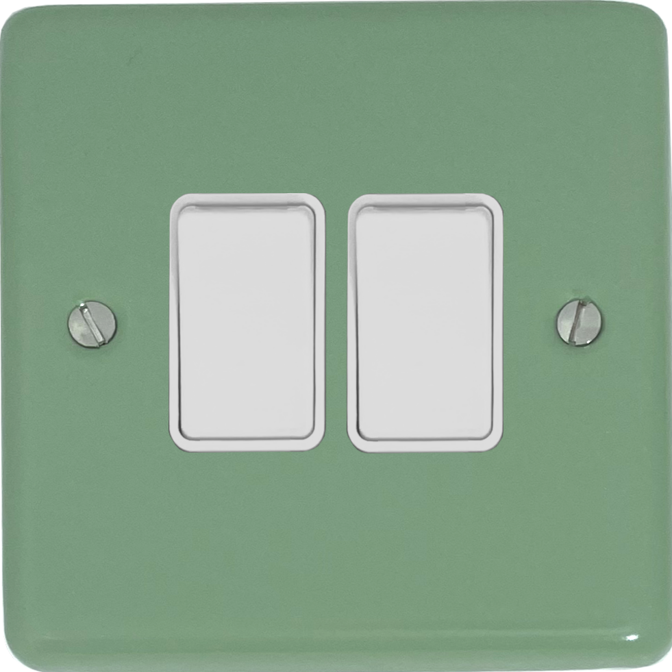 Contour Sage Green Light Switch (2 Gang/White Switches) - CSG2W