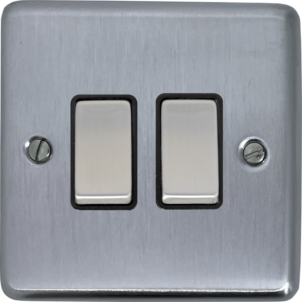 Contour Satin Chrome Light Switch (2 Gang/Black Insert/Matching Switch) CL.302.SC