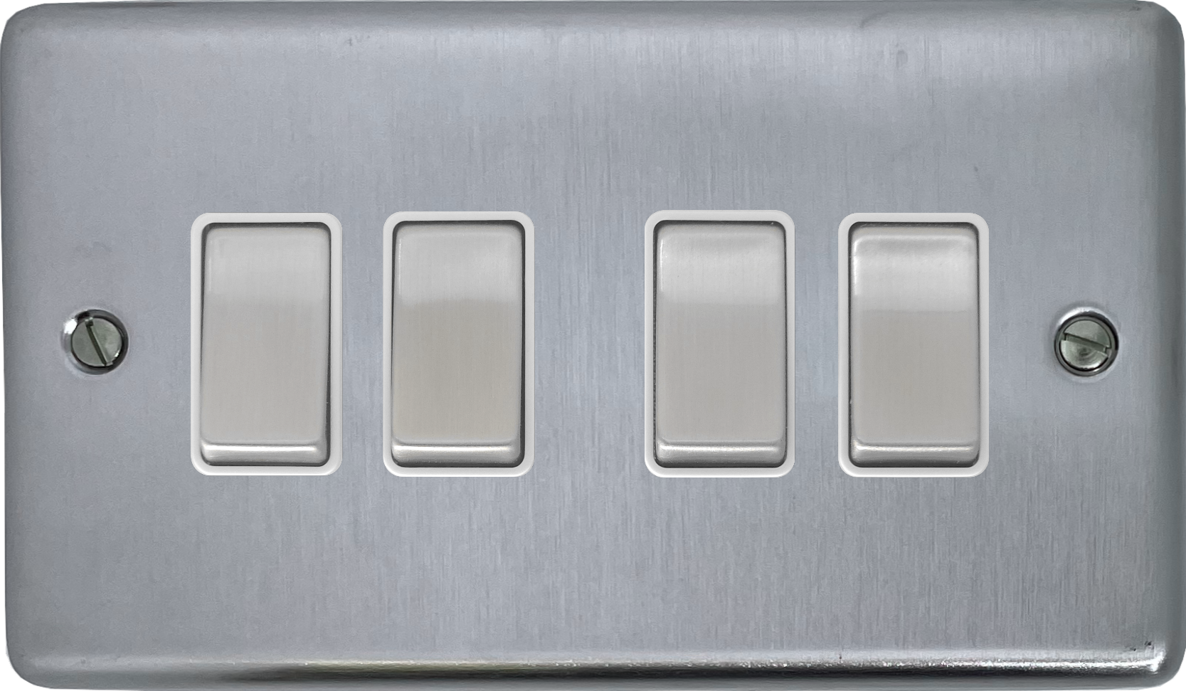 Contour Satin Chrome Light Switch (4 Gang/White Insert/Matching Switch) - CSC204