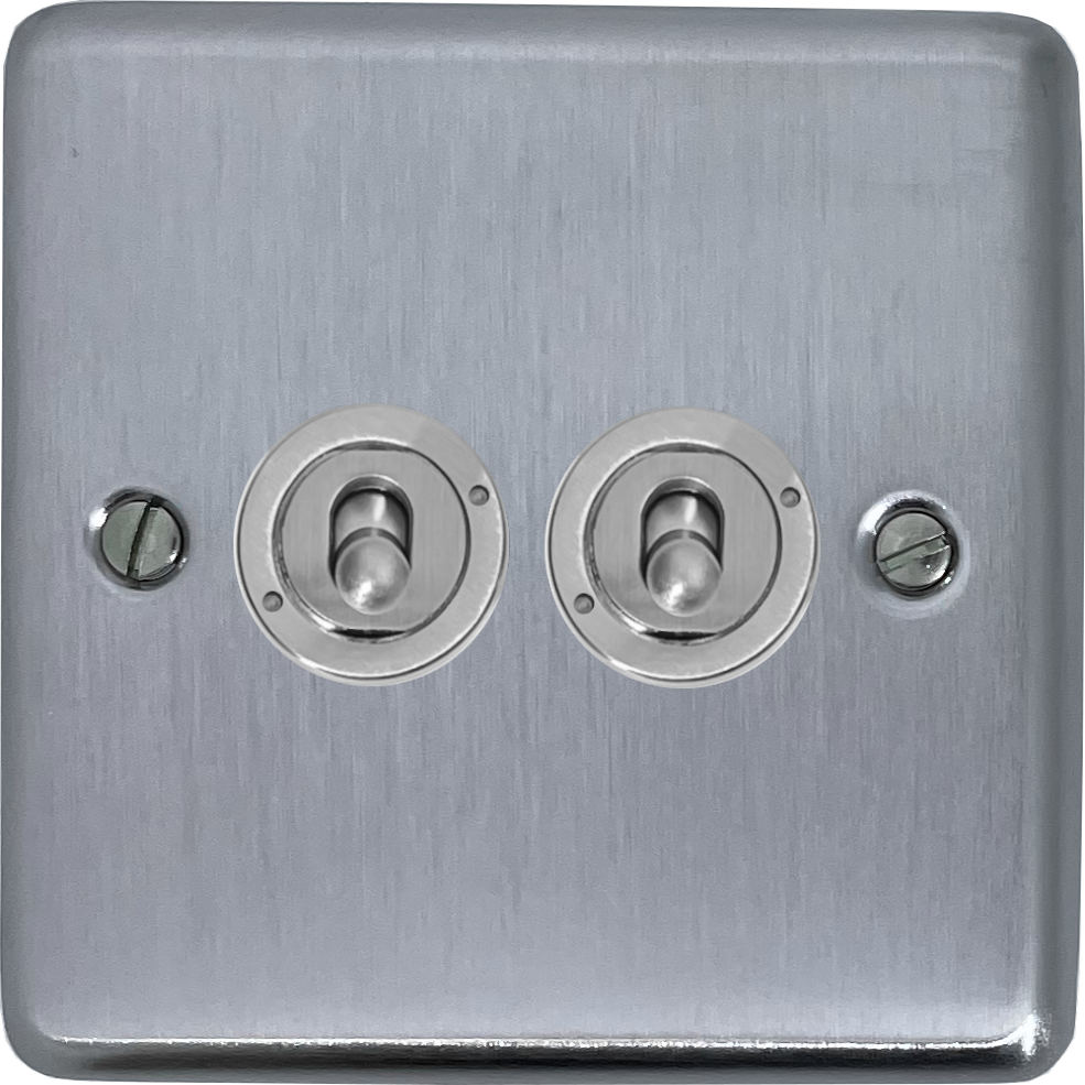 Contour Satin Chrome Toggle Switch (2 Gang/Brushed Steel Toggle) CL.382.SC