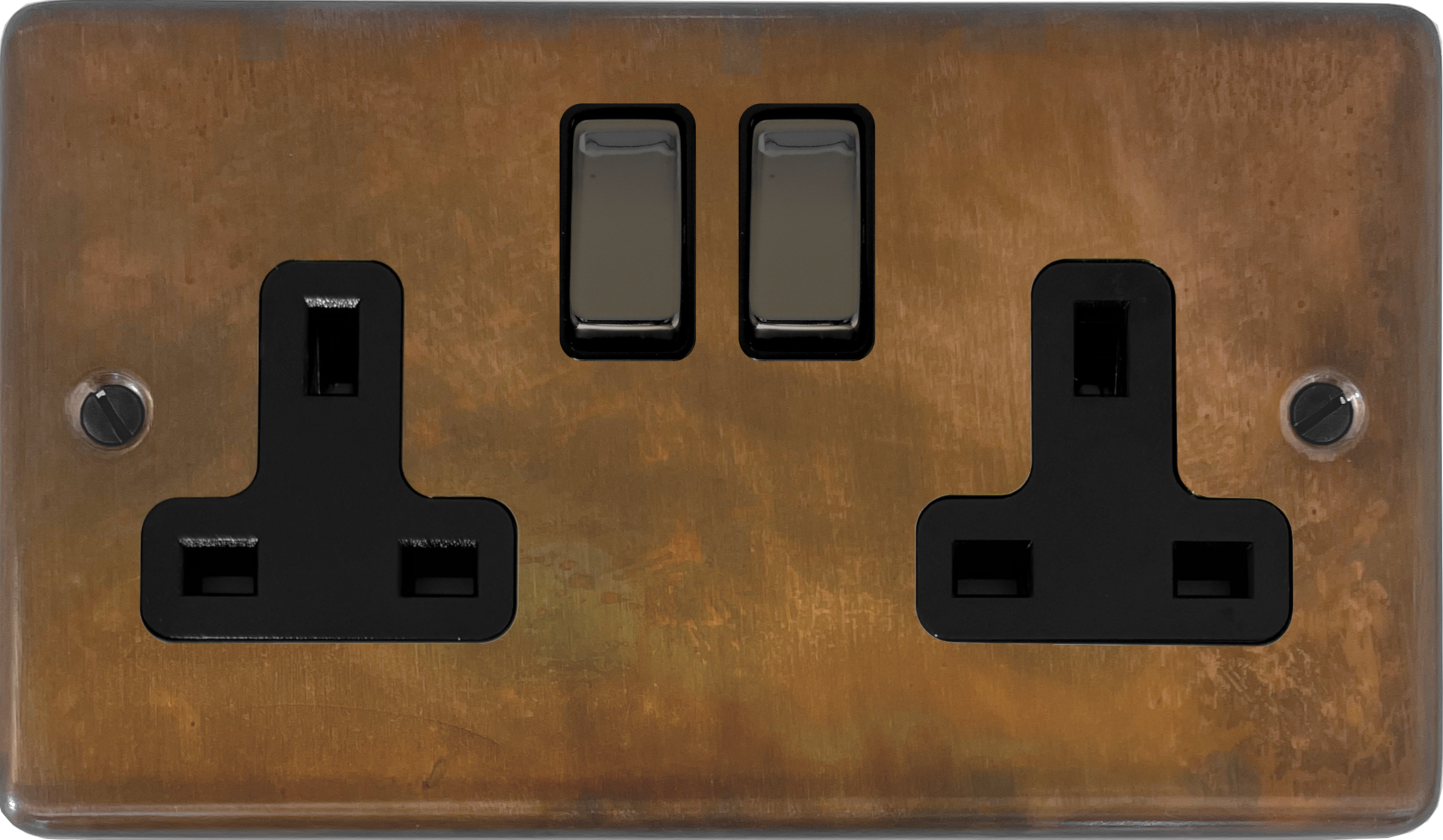 This is a two gang tarnished copper socket from G+H Electrical Accessories.