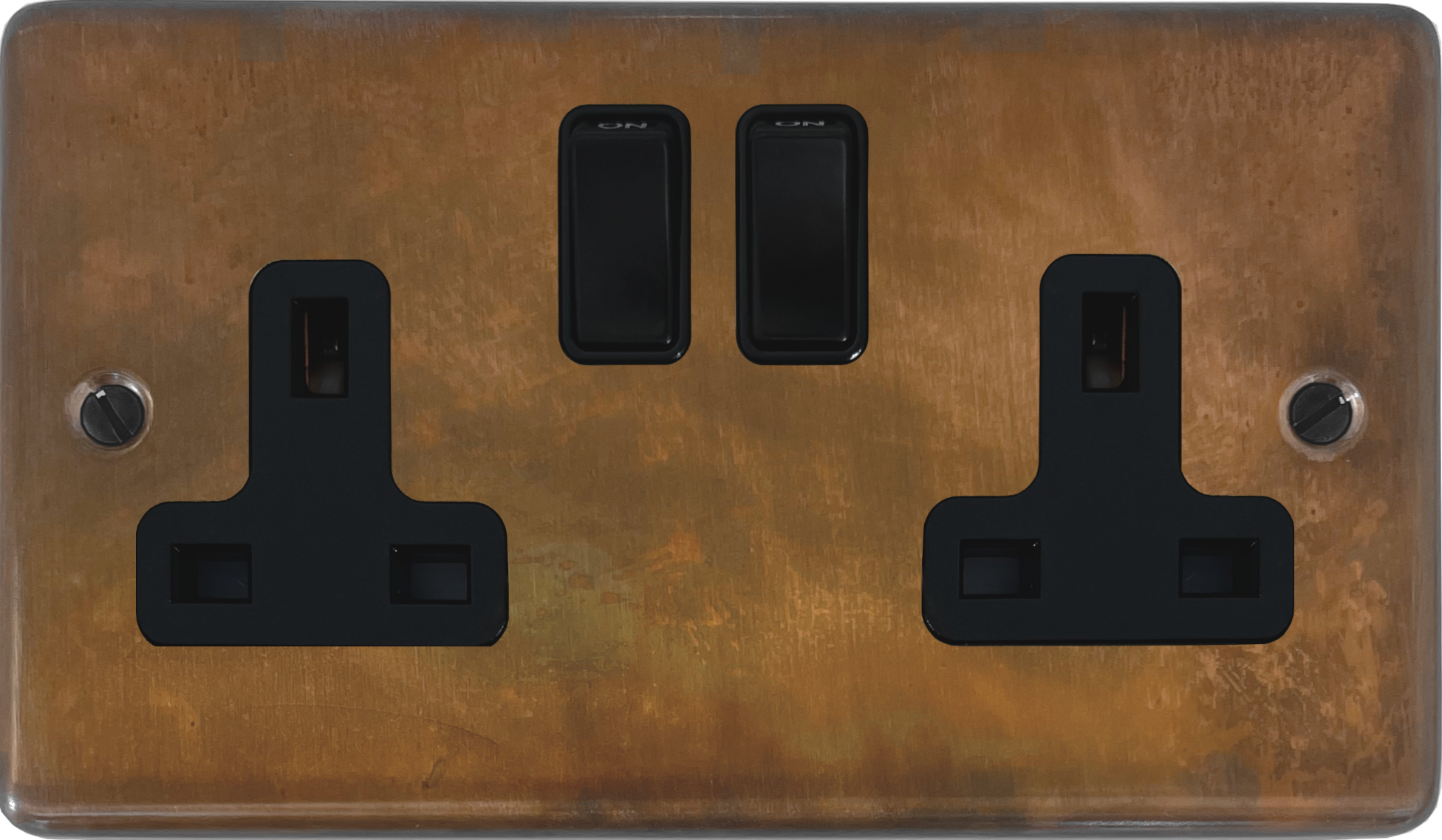 Contour Tarnished Copper Double Socket (Black Switch) - CTC10B