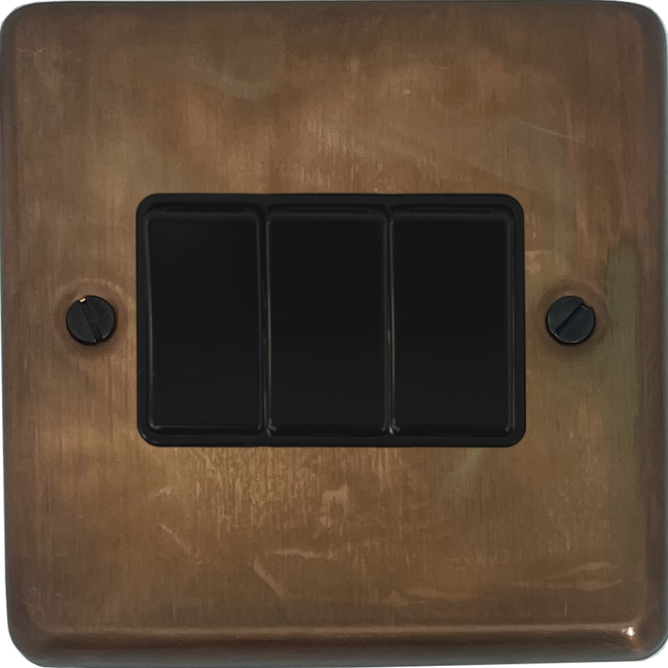 Contour Tarnished Copper Light Switch (3 Gang/Black Switch) CL.3B.TC