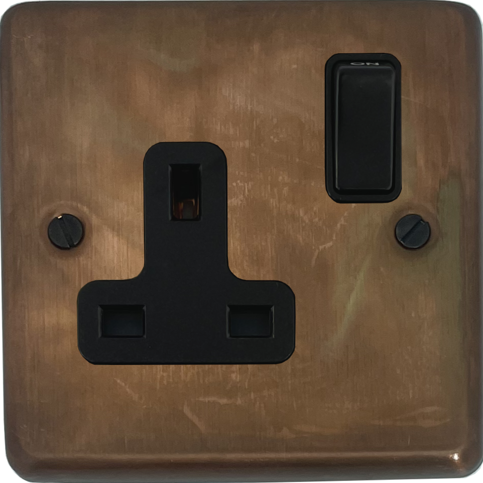 Contour Tarnished Copper Single Socket (Black Switch) CL.9B.TC