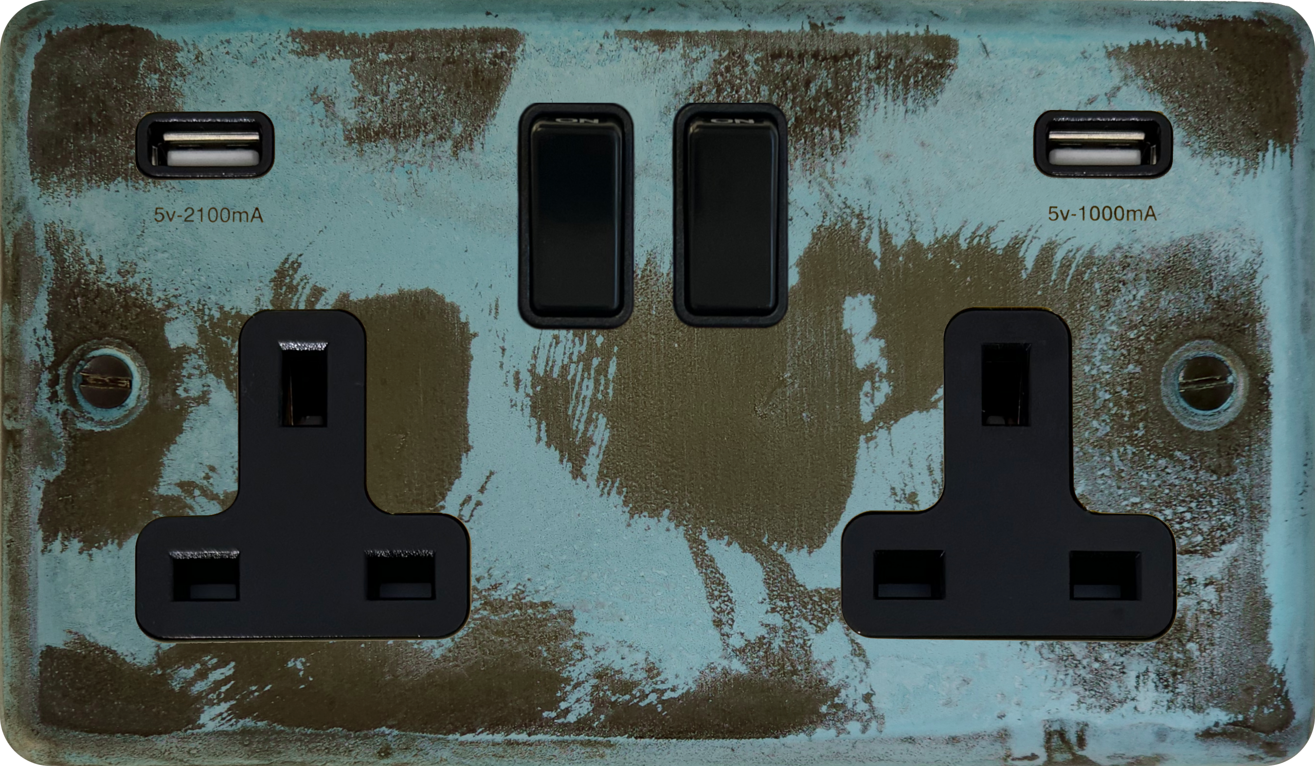 Contour Verdigris Double Socket with USB (Black Switch) - CV910B