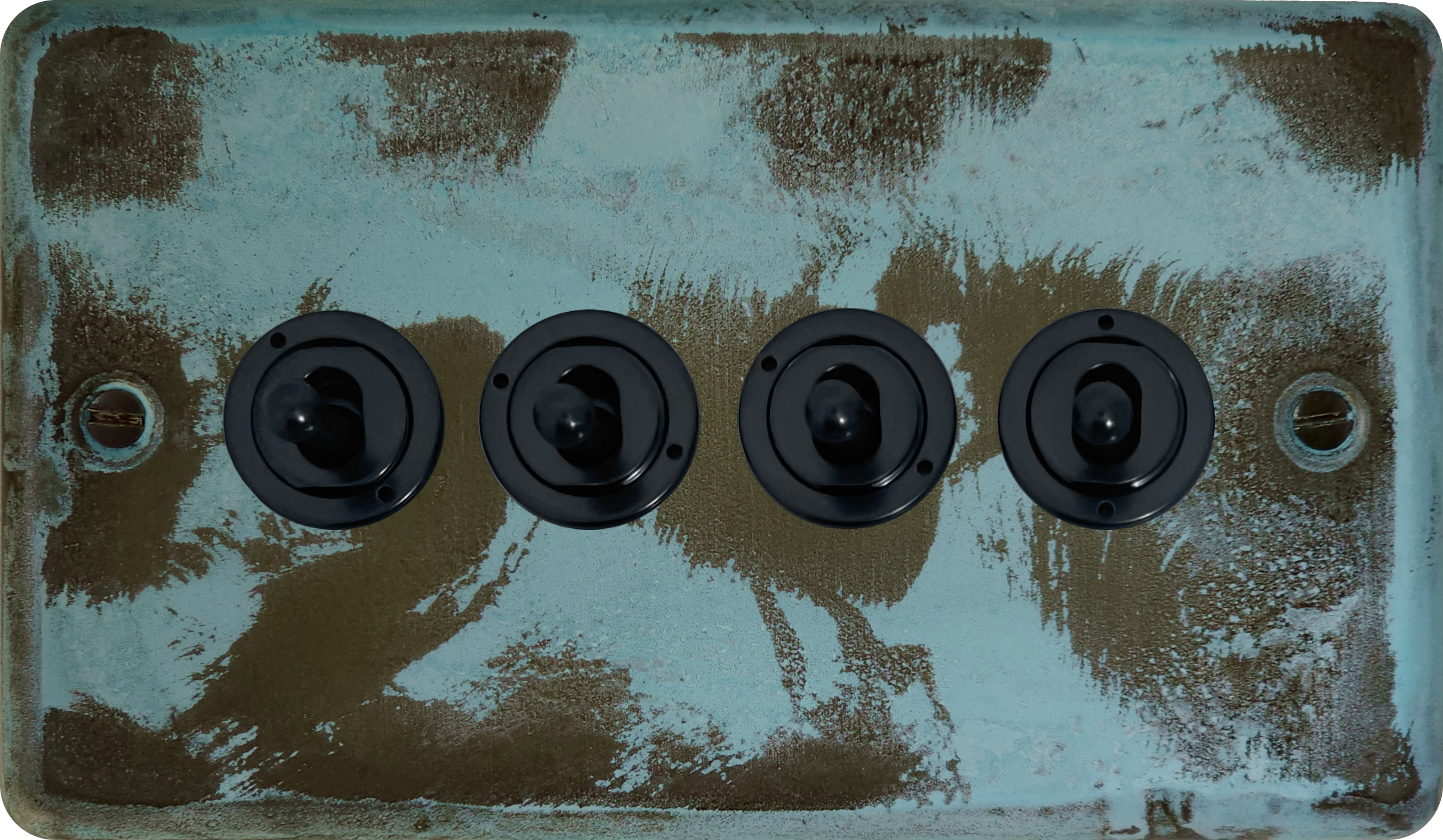 Contour Verdigris Toggle Switch (4 Gang/Flat Black Toggle) CL.384FBK.V