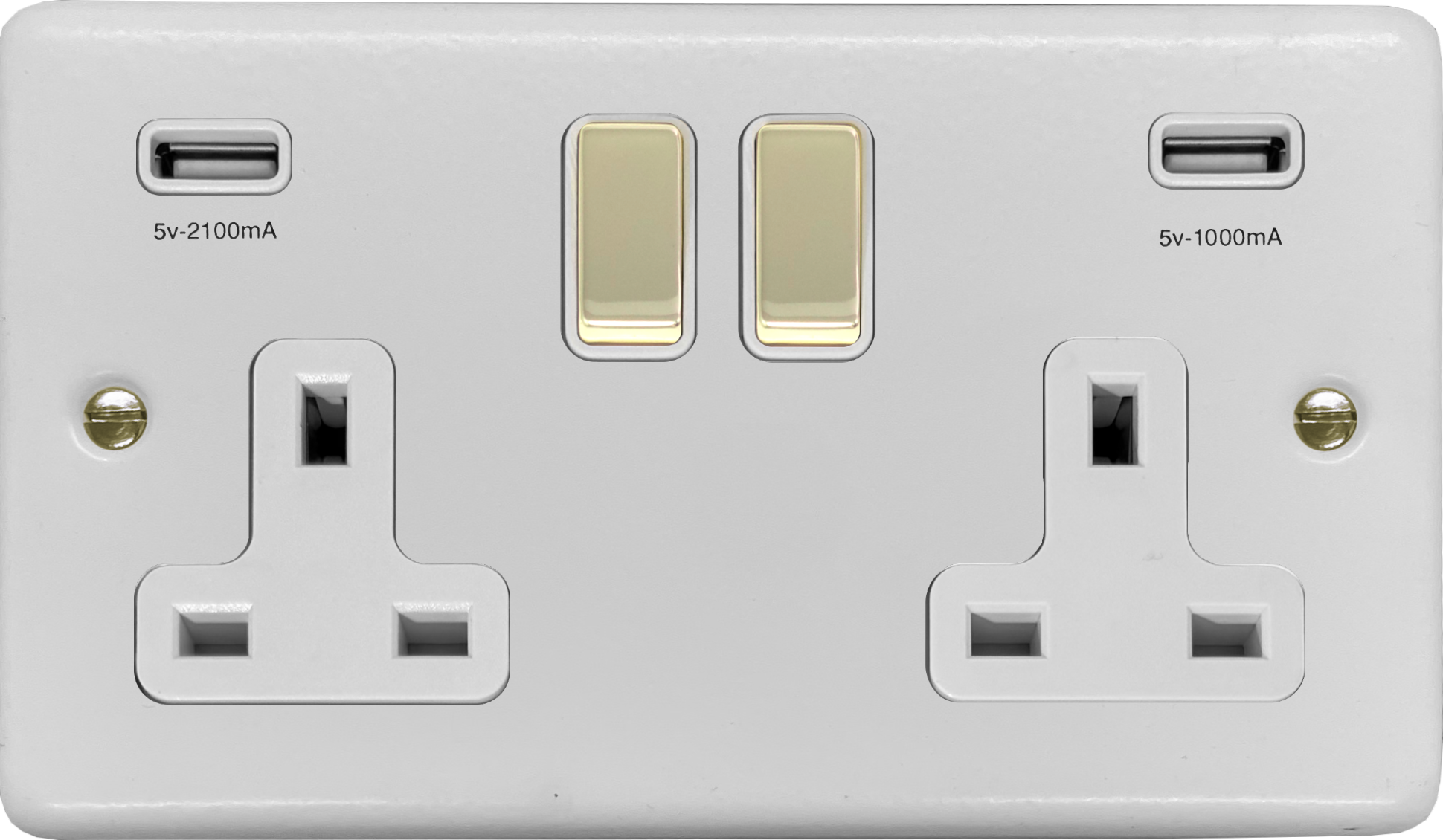 Contour White Double Socket with USB (Polished Brass Switches) - CW2910-PB