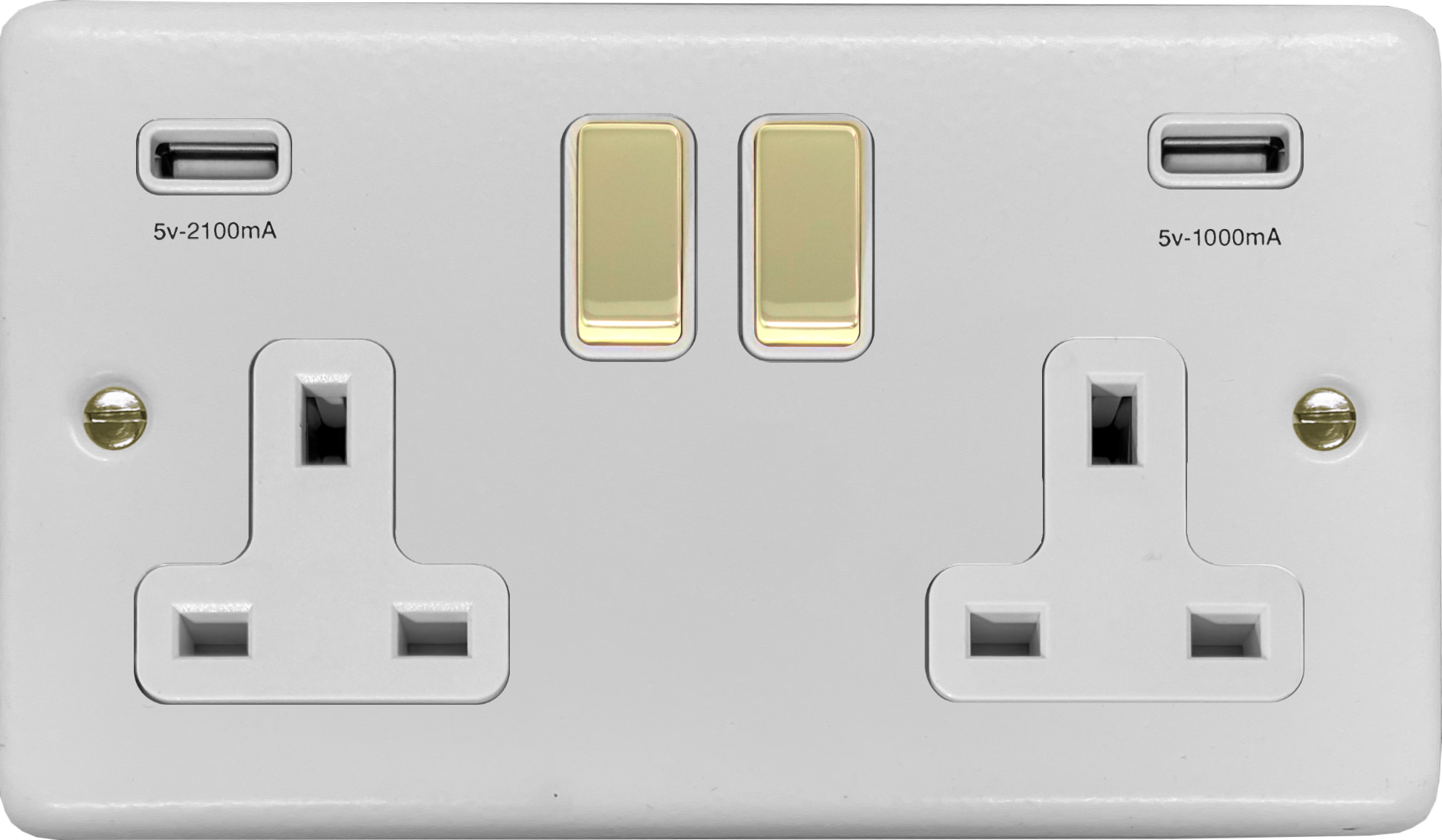 Contour White Double Socket with USB (Polished Brass Switches) CL.2910PB.W