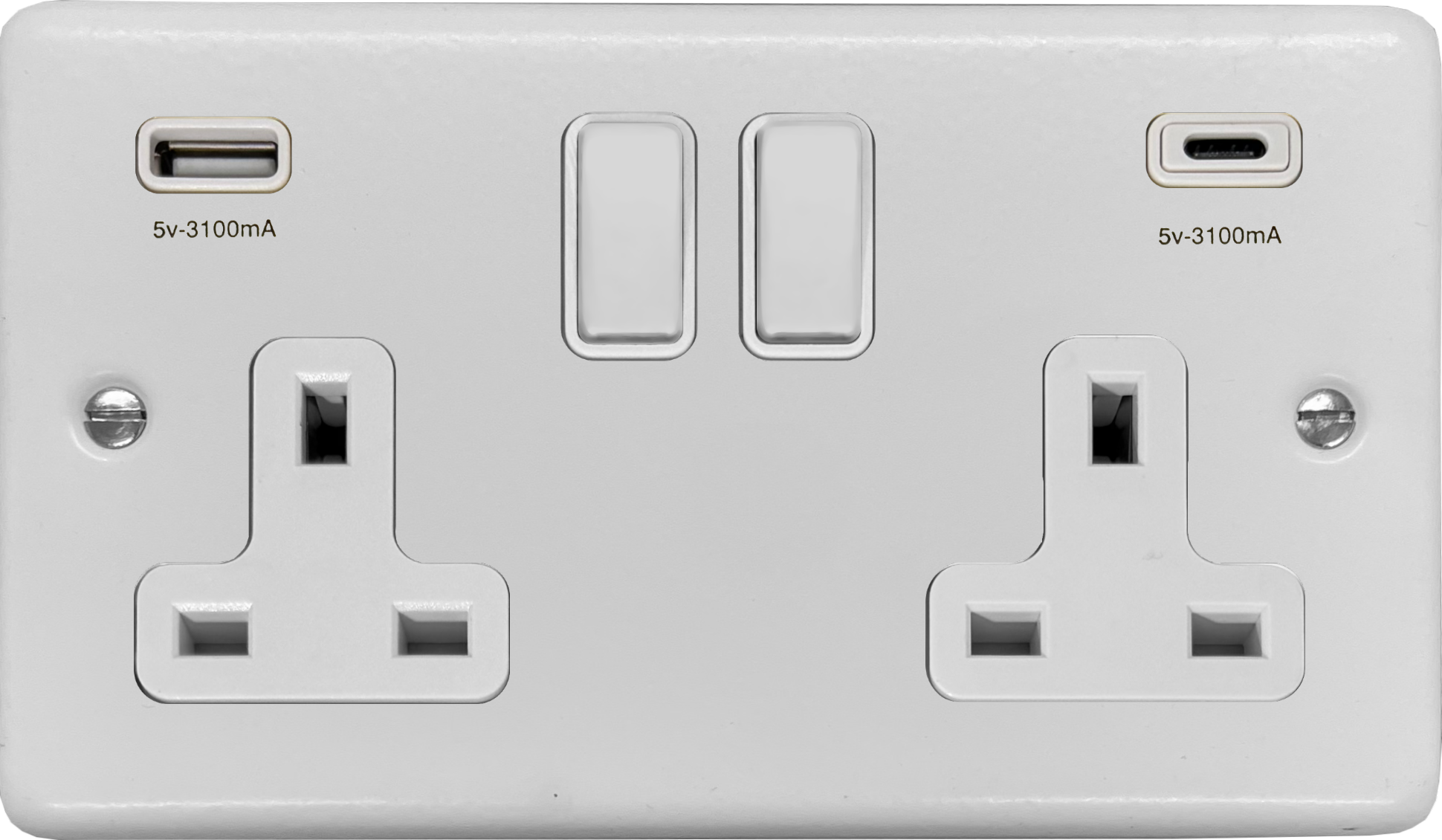 Contour White Double Socket with USB (USB-A and USB-C/White Switches) CL.911W.W