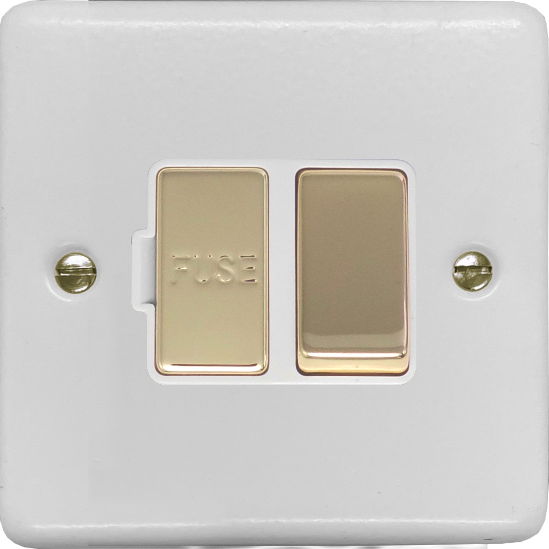 Contour White Switched Fused Spur (Polished Brass Switch) - CW257-PB