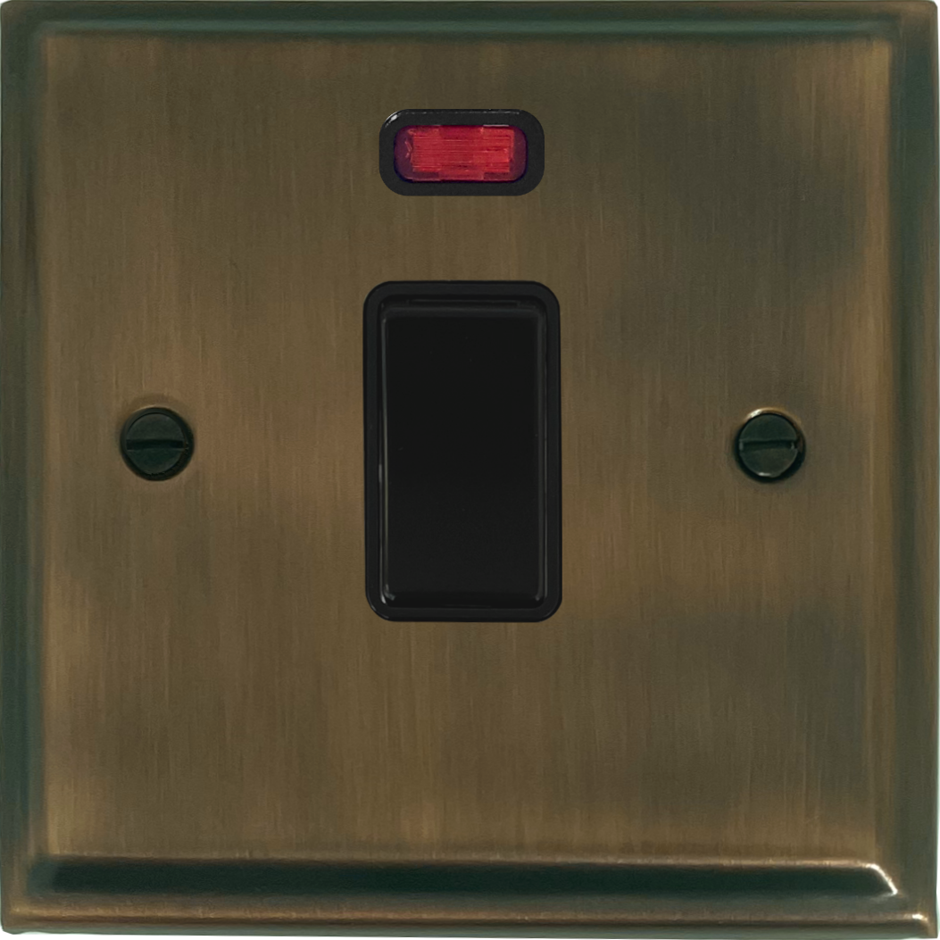 Deco Antique Brass 20A DP Switch with Neon (Black Switch) PE.26B.AB