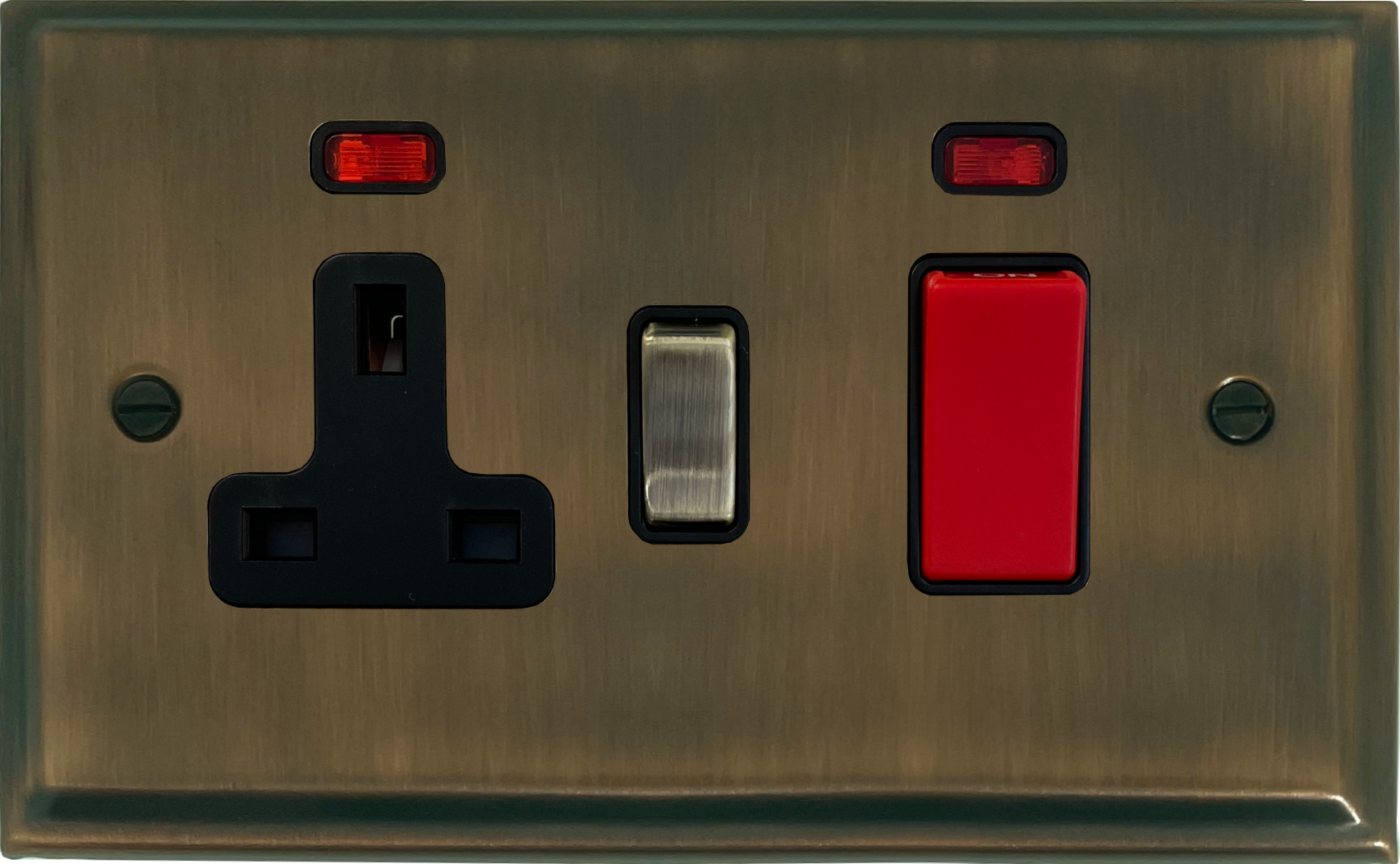 Deco Antique Brass Cooker Switch with Socket (Brass Switch) PE.329.AB