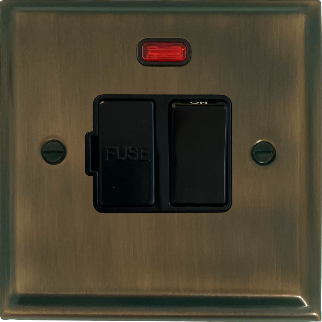 Deco Antique Brass Switched Fused Spur with Neon (Black Switch) PE.27B.AB