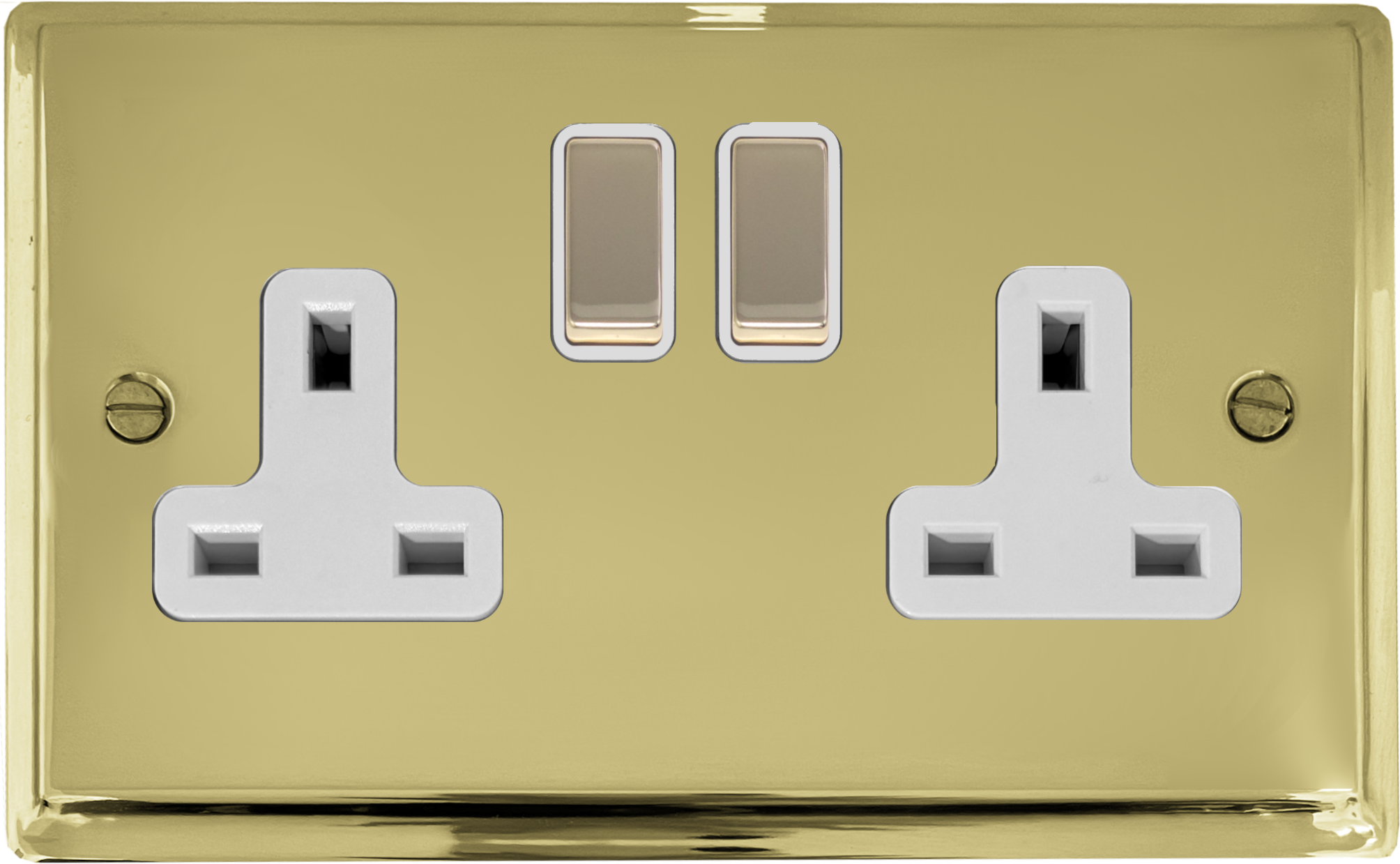 Deco Polished Brass Double Socket (Brass Switches/White Inserts) - DB210