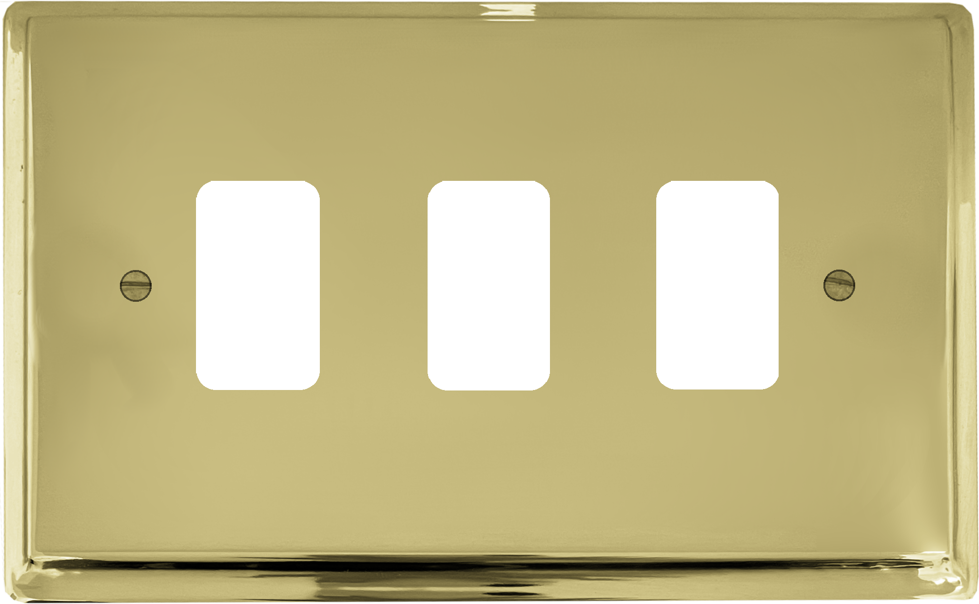 Deco Polished Brass Grid Plate (3 Gang) - DB73