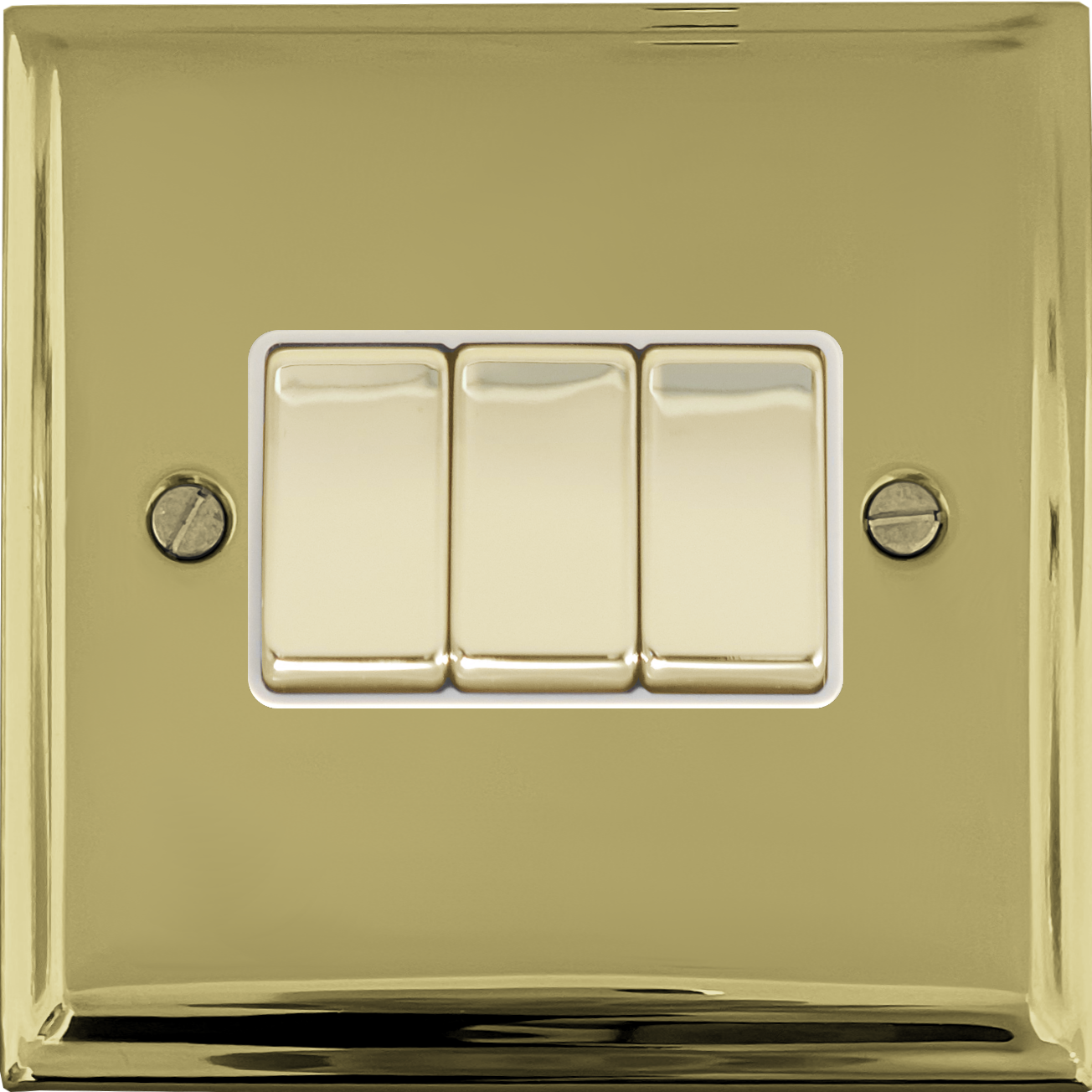 Deco Polished Brass Light Switch (3 Gang/Brass Switches/White Inserts) PE.203.B
