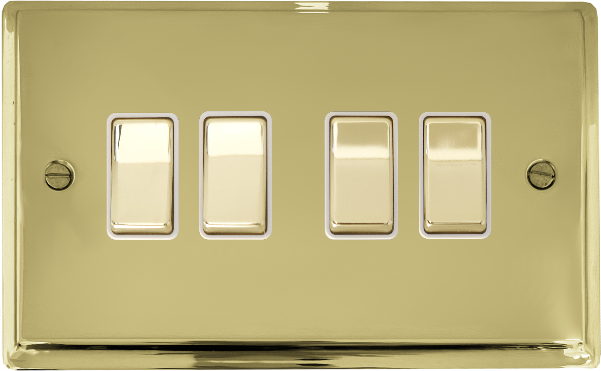 Deco Polished Brass Light Switch (4 Gang/Brass Switches/White Inserts) - DB204