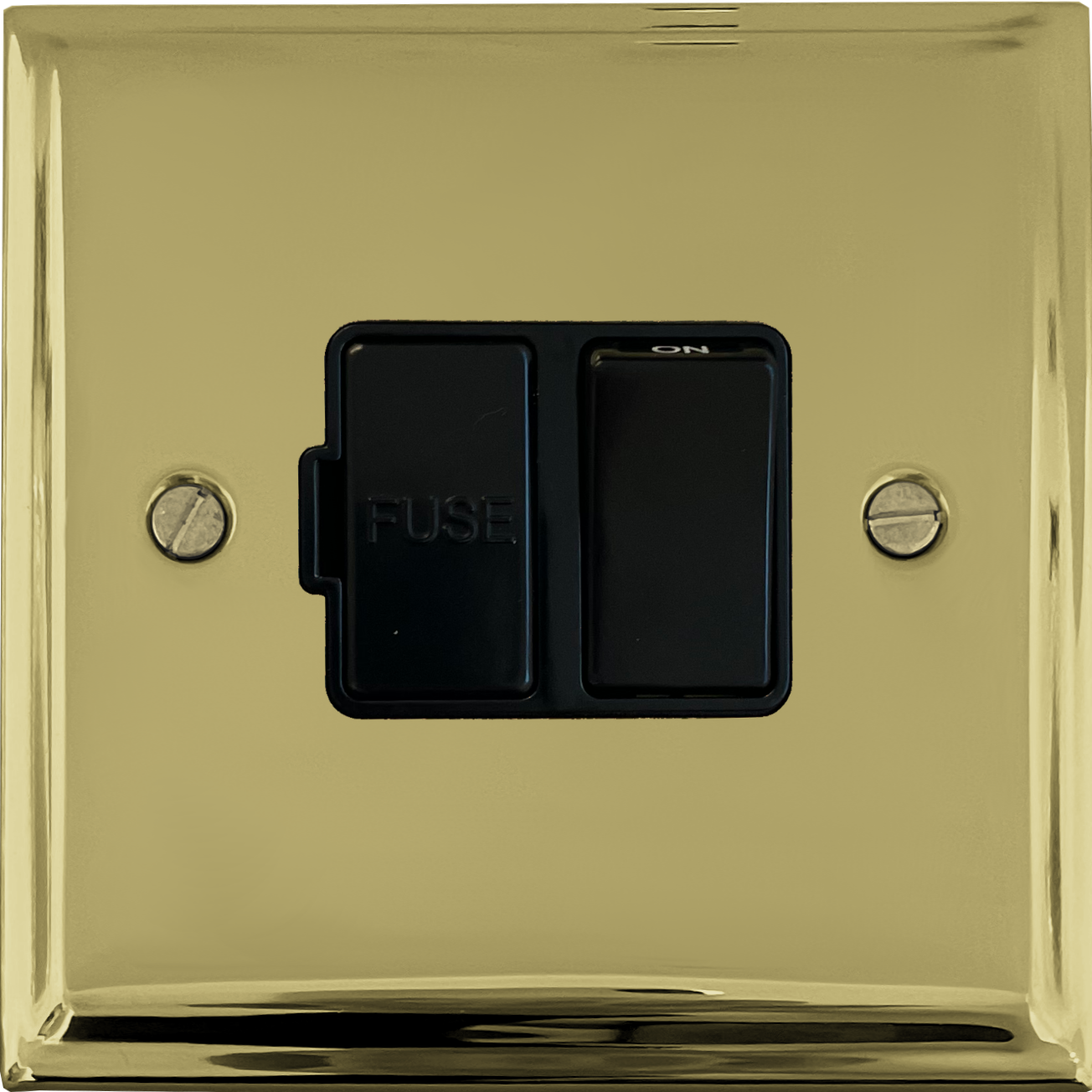 Deco Polished Brass Switched Fused Spur (Black Switch) PE.57B.B