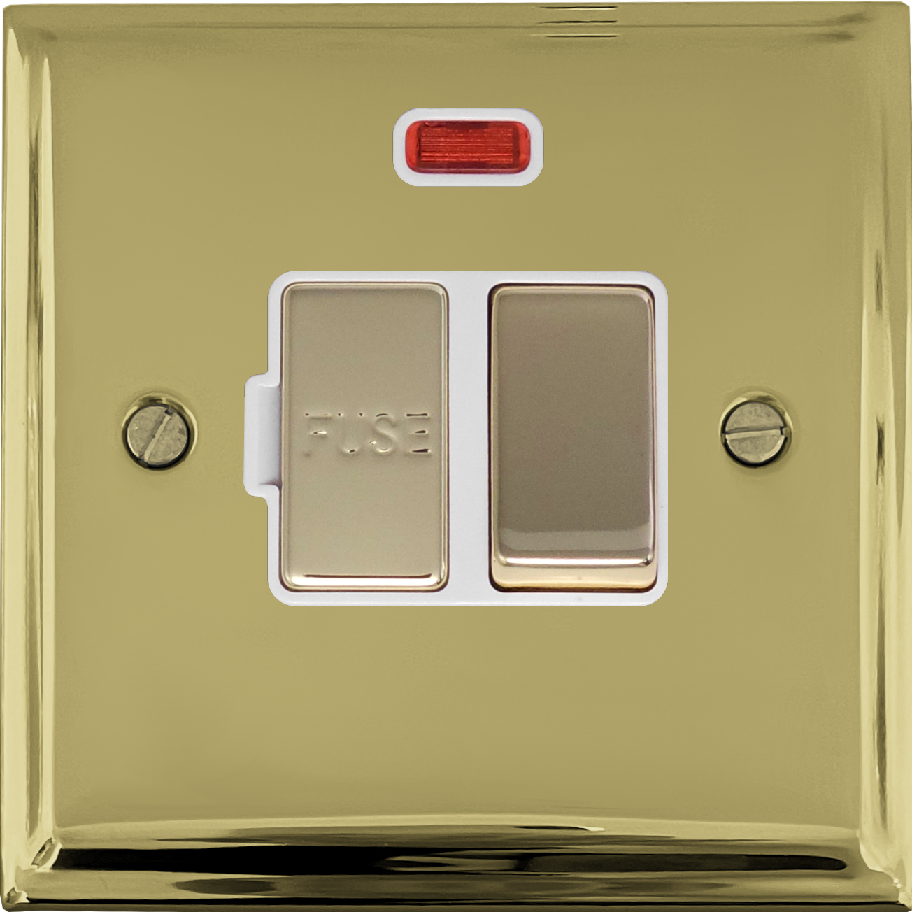 Deco Polished Brass Switch/White Inserted Fused Spur with Neon (Brass Switch/White Insert) PE.227.B