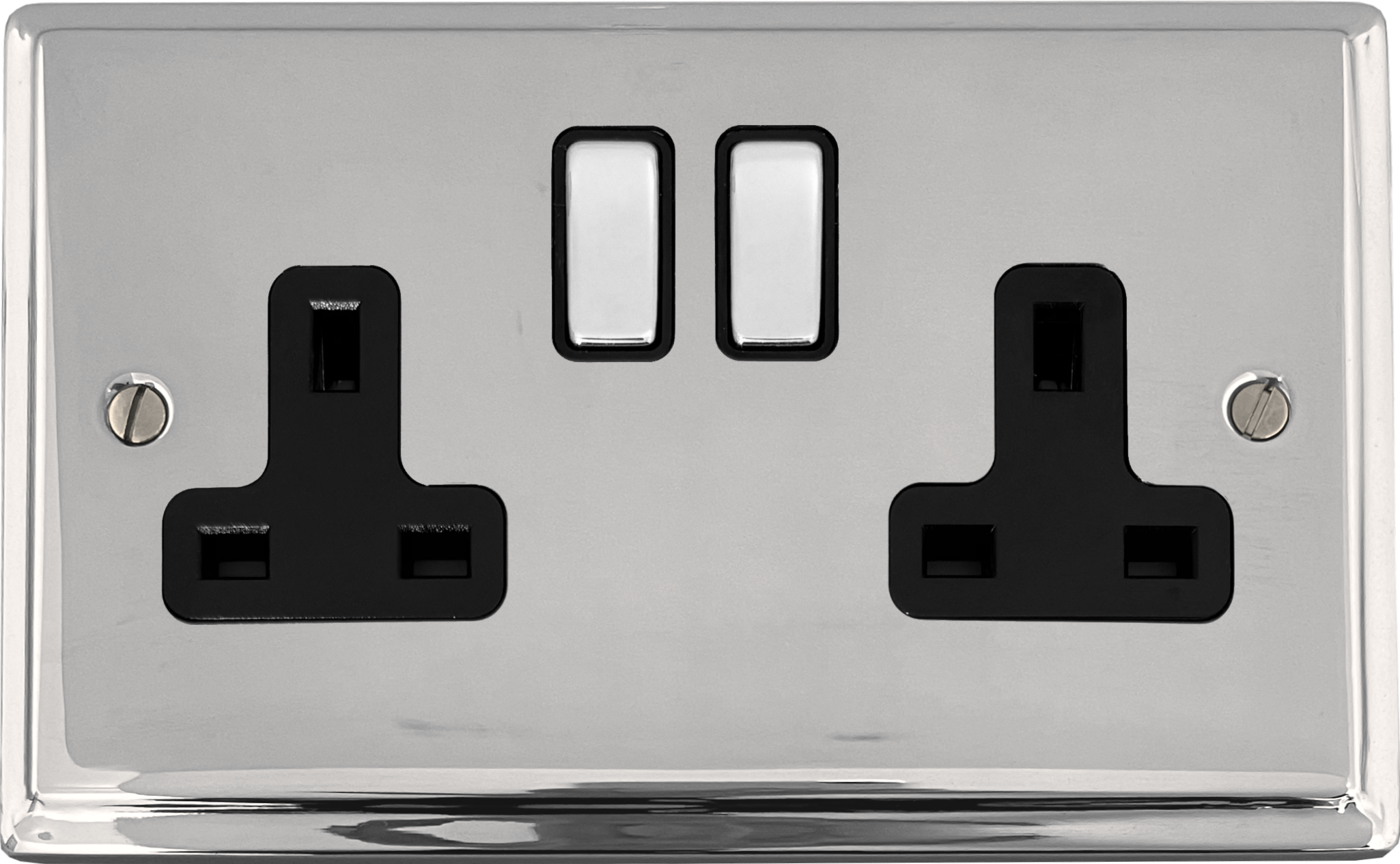 Deco Polished Chrome Double Socket (Black Insert/Chrome Switches) PE.310.C