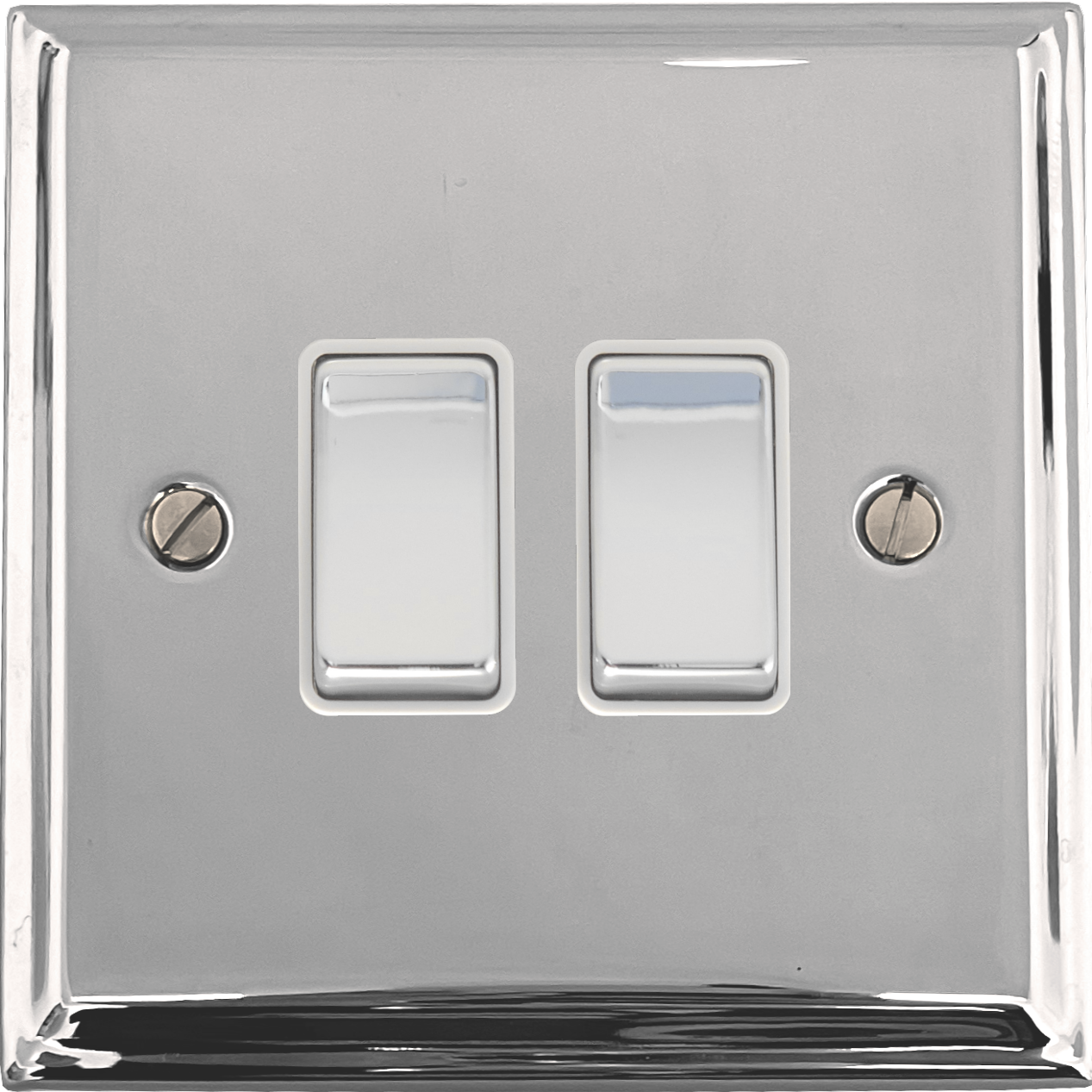 Deco Polished Chrome Light Switch (2 Gang/White Insert/Chrome Switches) - DC202