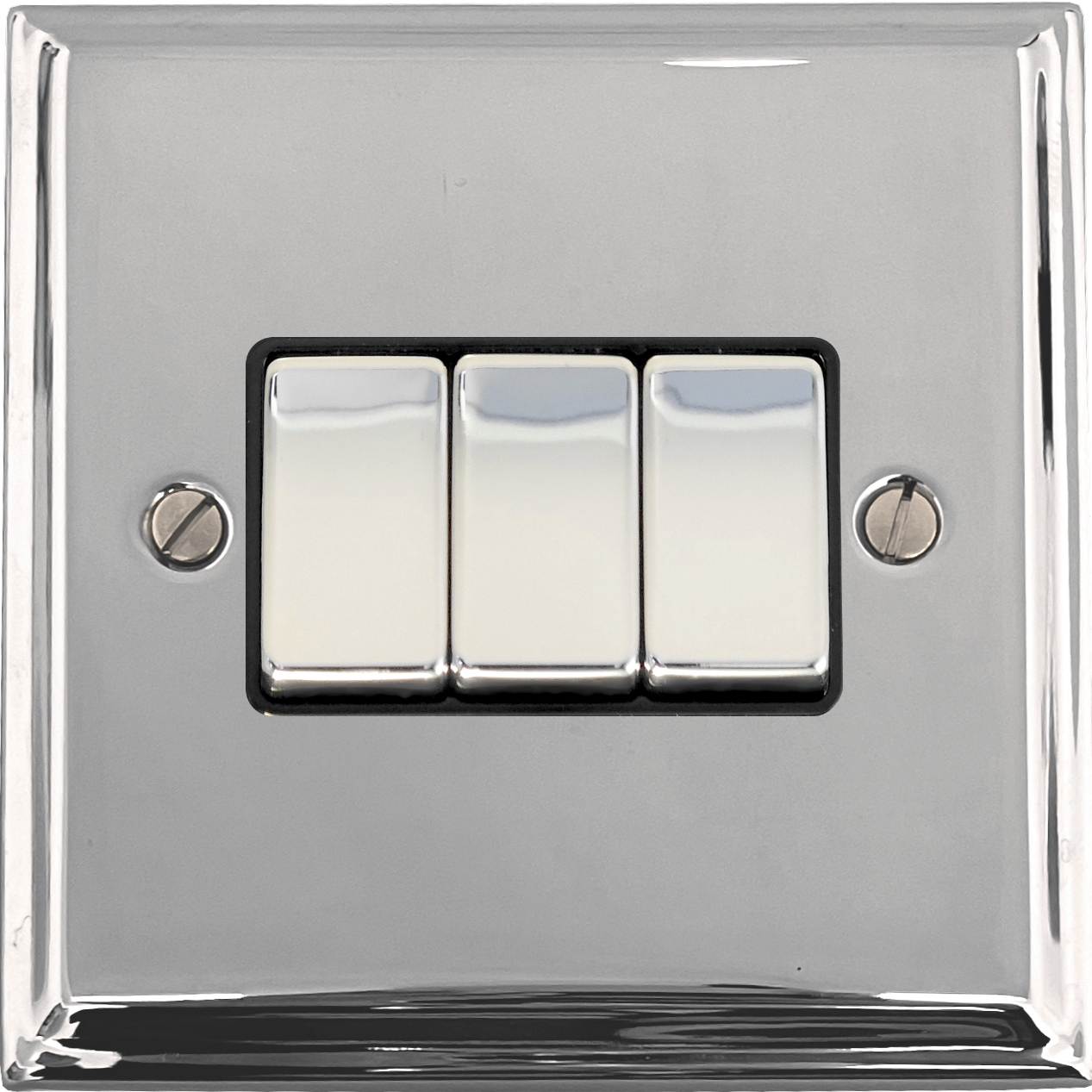 Deco Polished Chrome Light Switch (3 Gang/Black Insert/Chrome Switches) - DC303