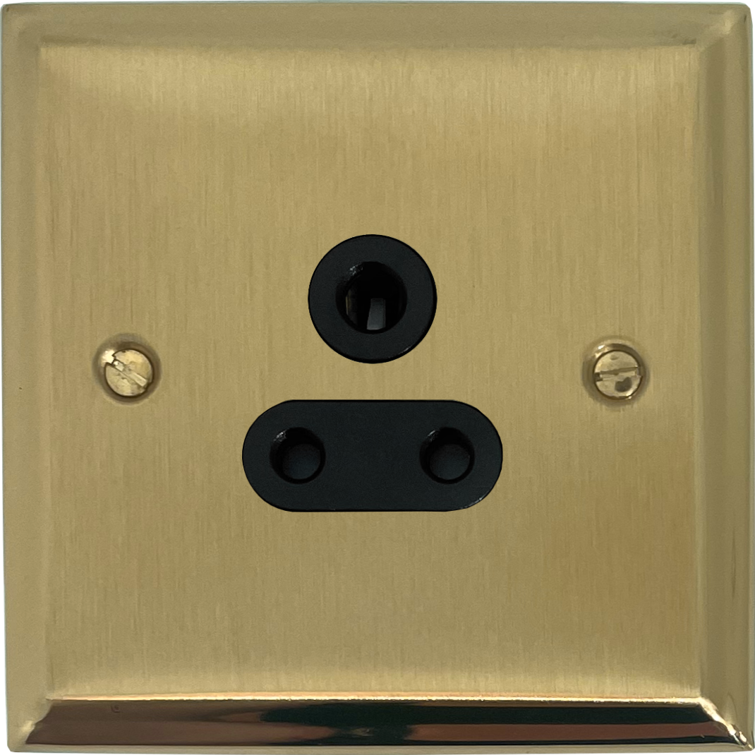 Deco Satin Brass 5A 3 Pin Socket (Black Insert) PE.59B.SB