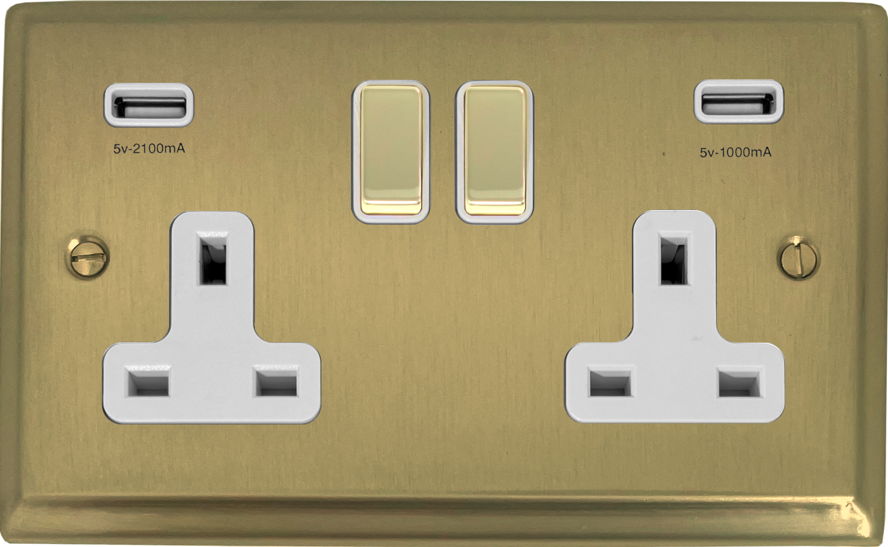 Deco Satin Brass Double Socket with USB (Brass Switches/White Inserts) PE.2910.SB