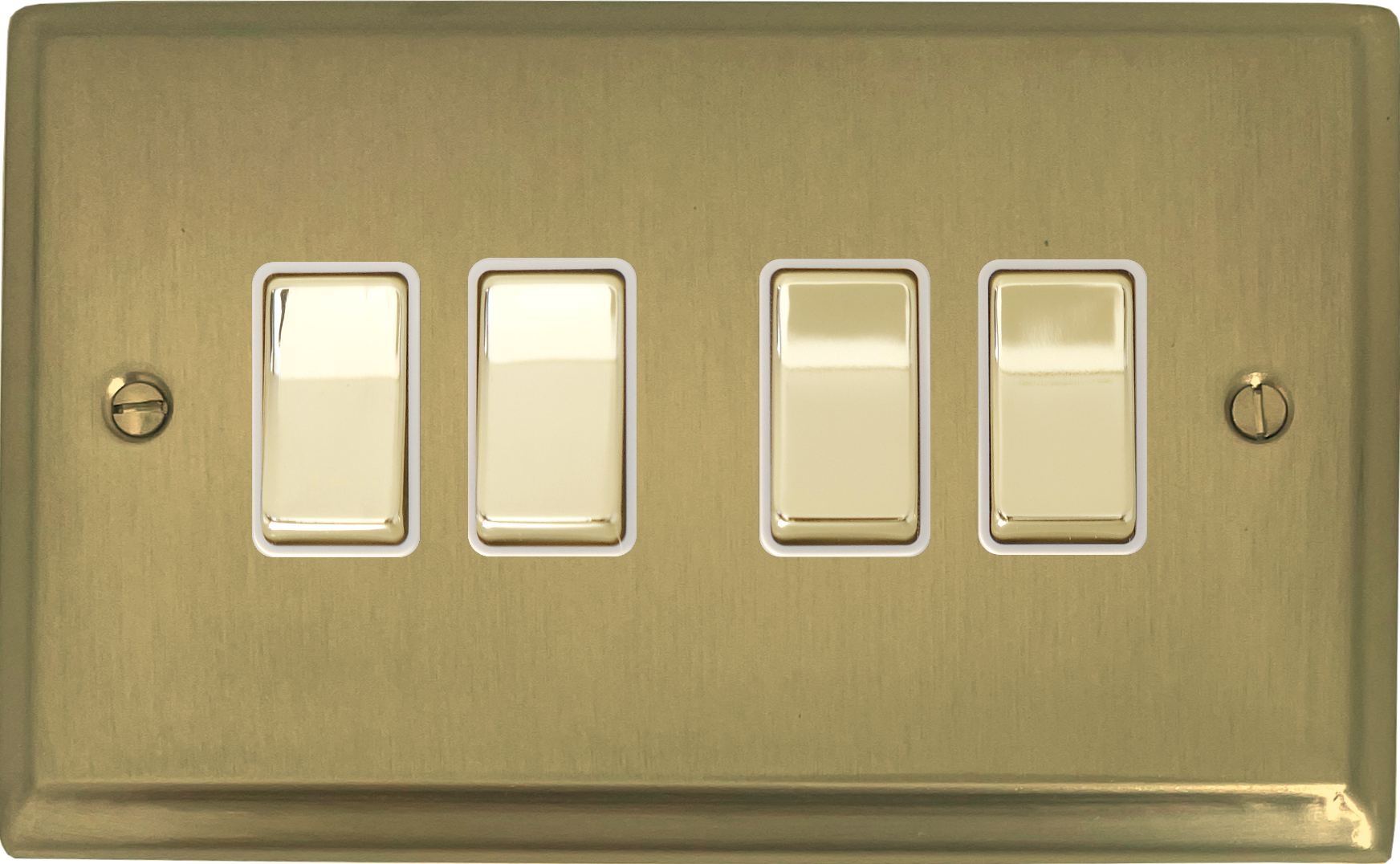 Deco Satin Brass Light Switch (4 Gang/Brass Switches/White Inserts) - DSB204