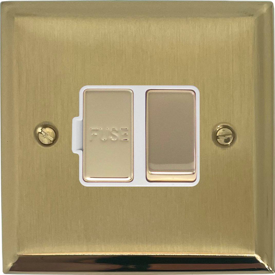 Deco Satin Brass Switched Fused Spur (Brass Switch/White Insert) - DSB257