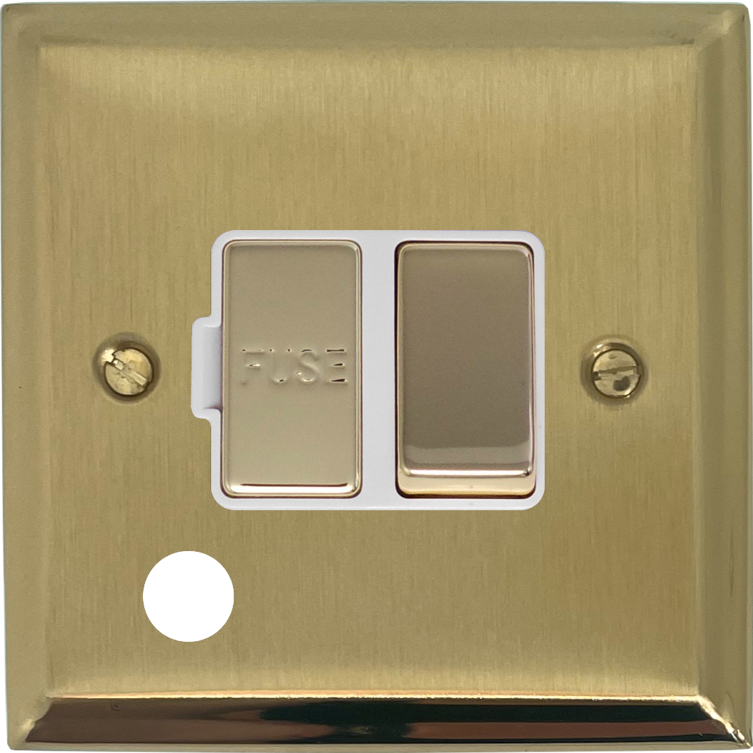 Deco Satin Brass Switched Fused Spur with Flex Outlet (Brass Switch/White Insert) PE.256.SB