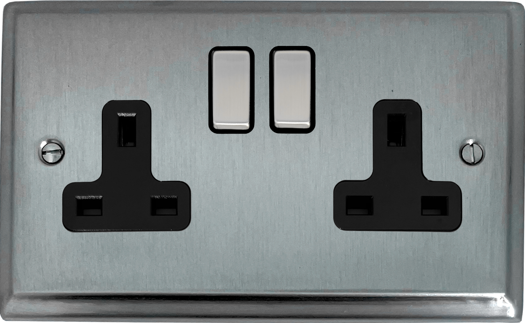 Deco Satin Chrome Double Socket (Black Insert/Matching Switch) PE.310.SC