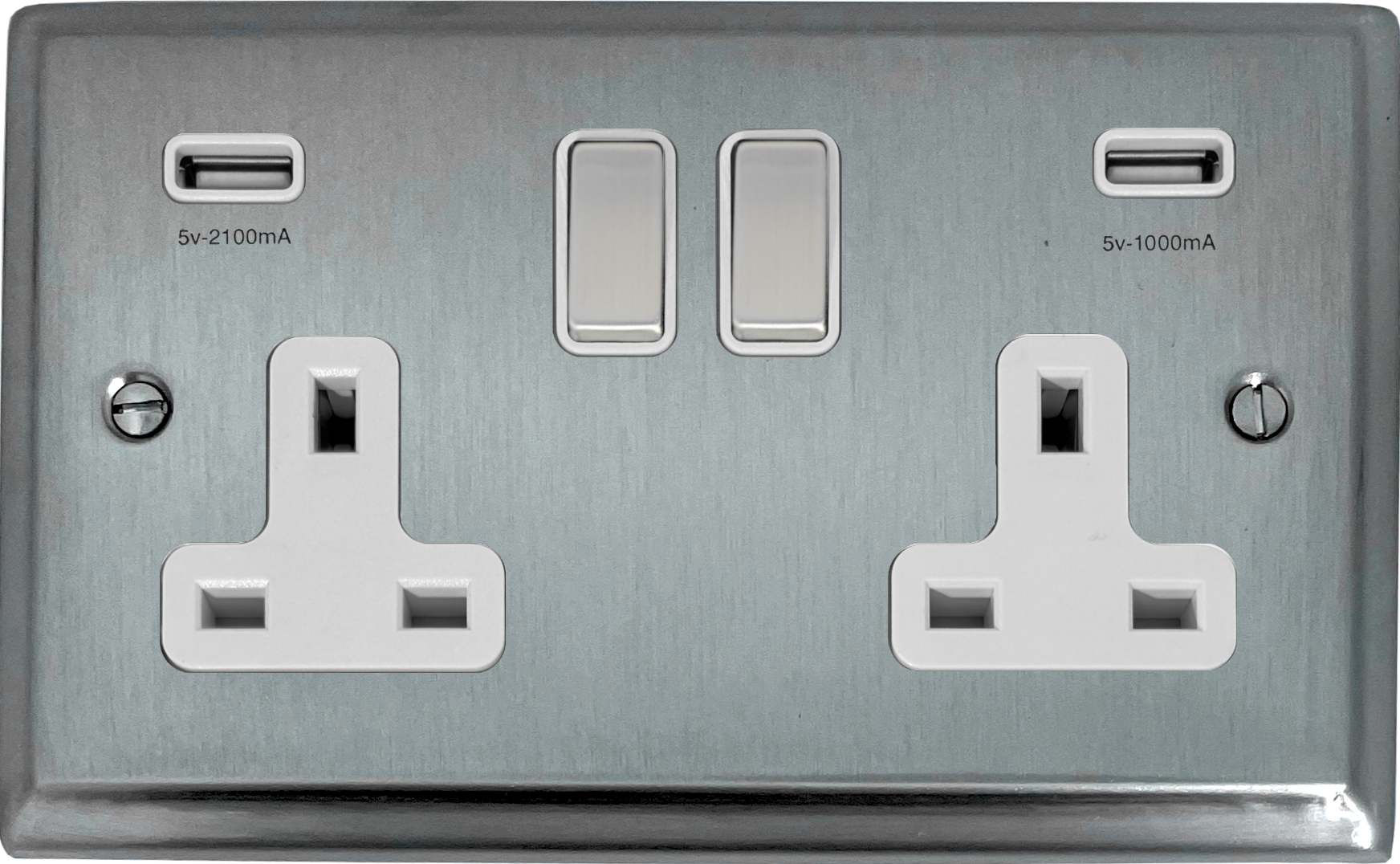 Deco Satin Chrome Double Socket with USB (White Insert/Matching Switch) PE.2910.SC