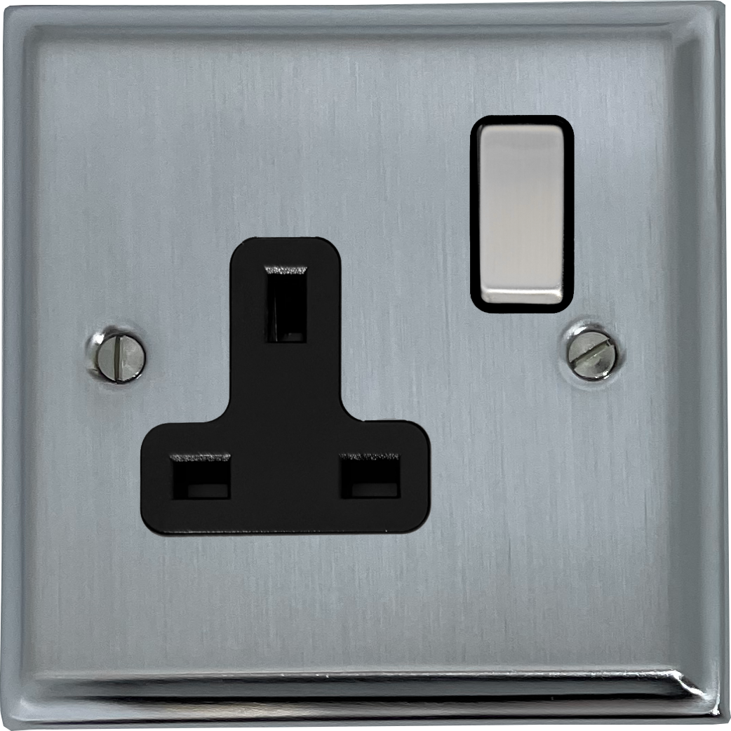 Deco Satin Chrome Single Socket (Black Insert/Matching Switch) PE.309.SC