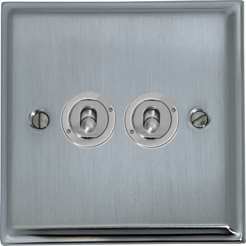 Deco Satin chrome Toggle Switch (2 Gang/Brushed Steel Toggle) - DSC382