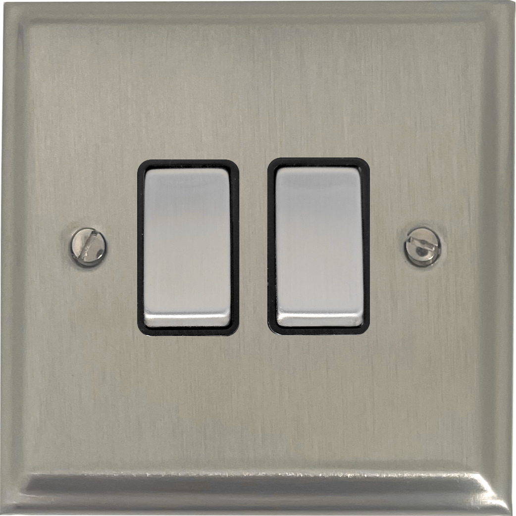 Deco Satin Nickel Light Switch (2 Gang/Black Insert/Matching Switch) PE.302.SN
