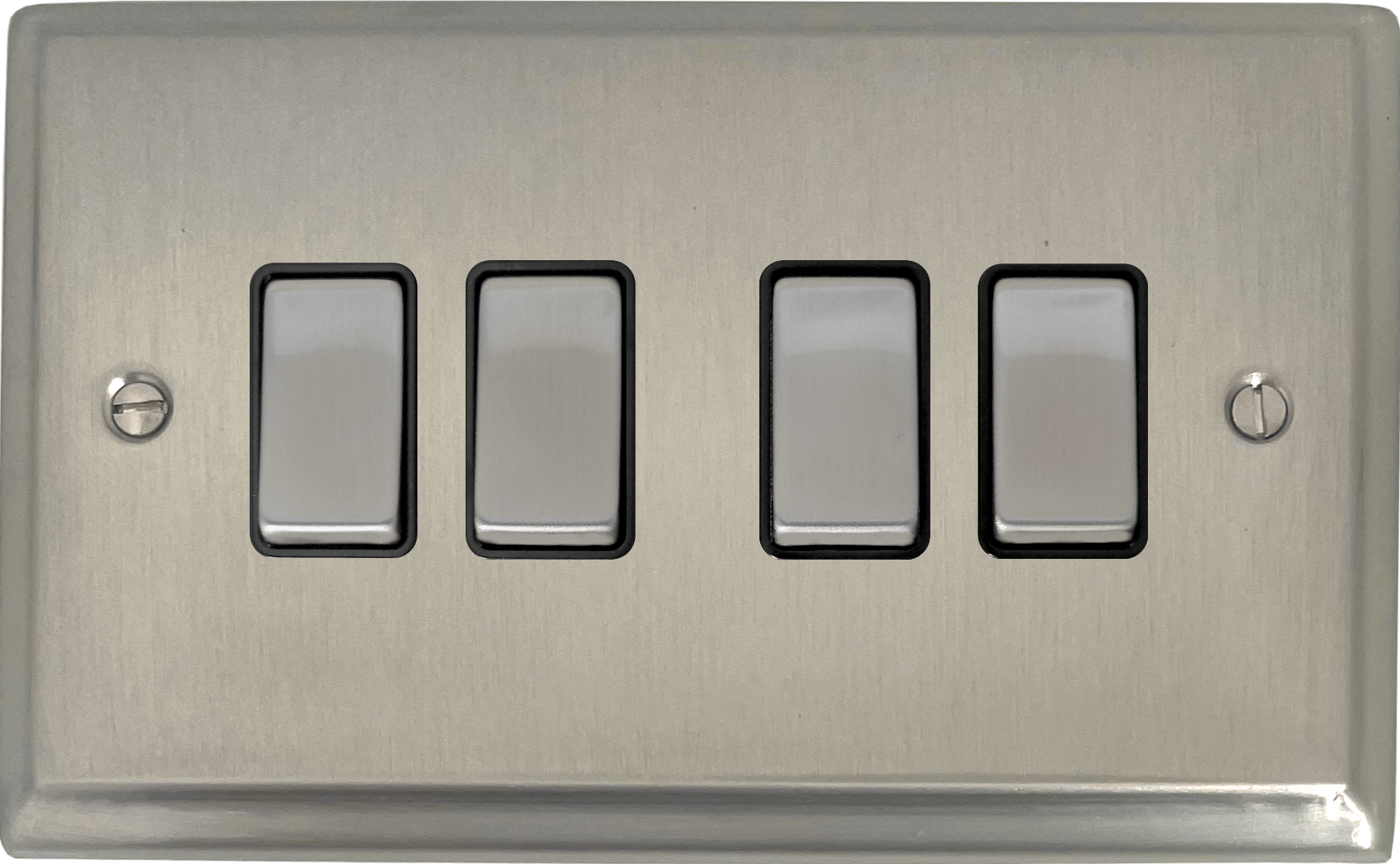 Deco Satin Nickel Light Switch (4 Gang/Black Insert/Matching Switch) PE.304.SN