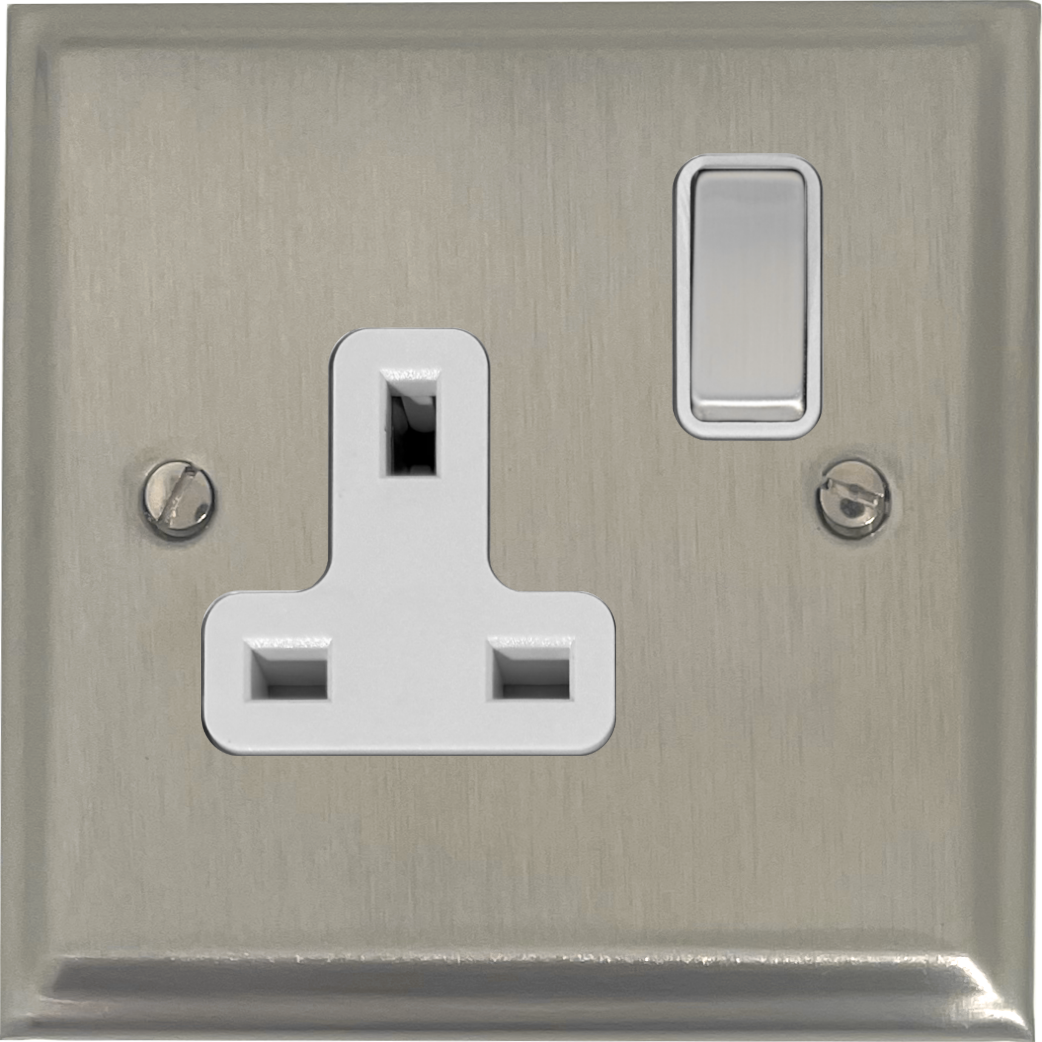 Deco Satin Nickel Single Socket (White Insert/Matching Switch) - DSN209