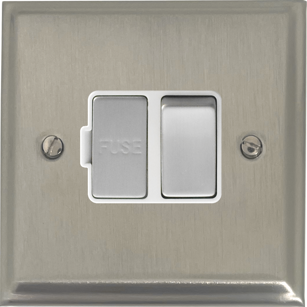 Deco Satin Nickel Switched Fused Spur (White Insert/Matching Switch) - DSN257