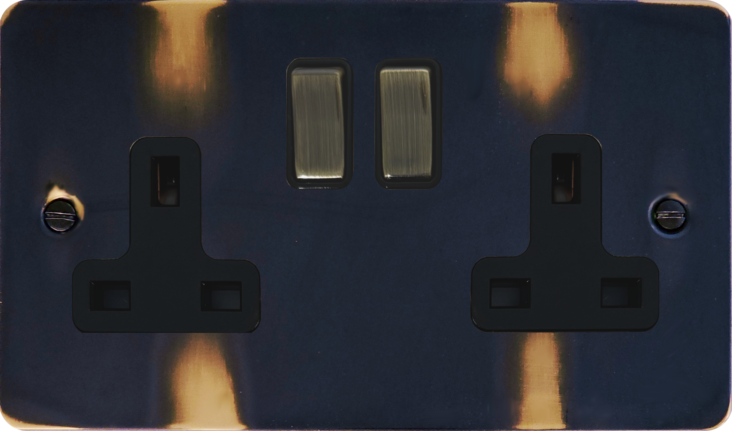 Flat Aged Brass Double Socket (Black Insert/ Antique Brass Switches) FL.310.AN