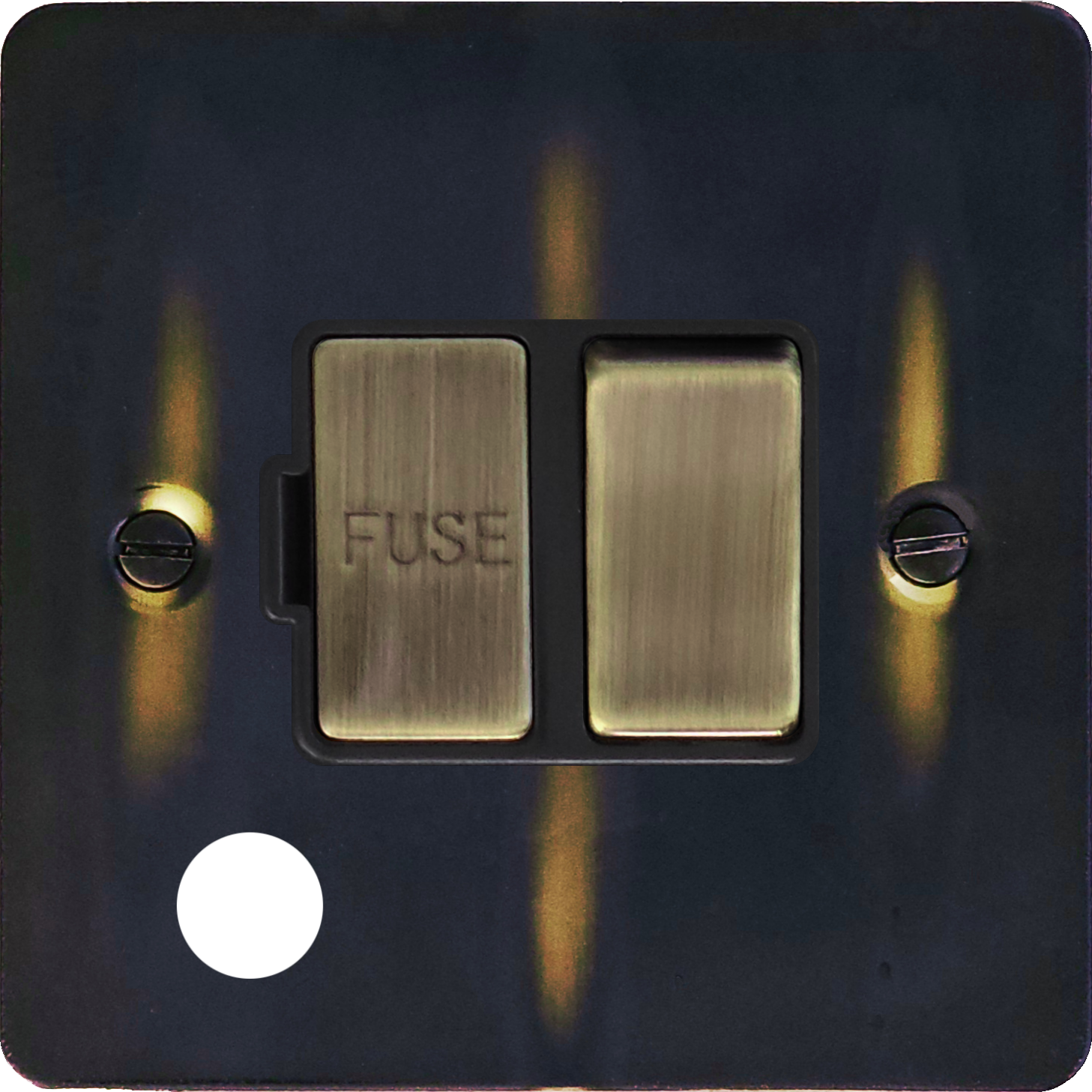 Flat Aged Brass Switched Fused Spur with Flex Outlet (Black Insert/ Antique Brass Switch) FL.356.AN
