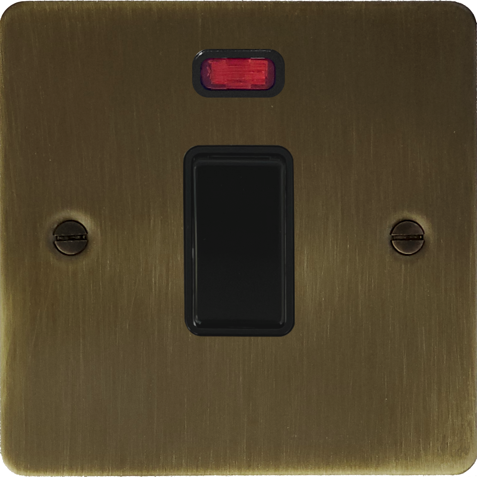 Flat Antique Brass 20 Amp DP Switch with Neon (Black Switch) FL.26B.AB